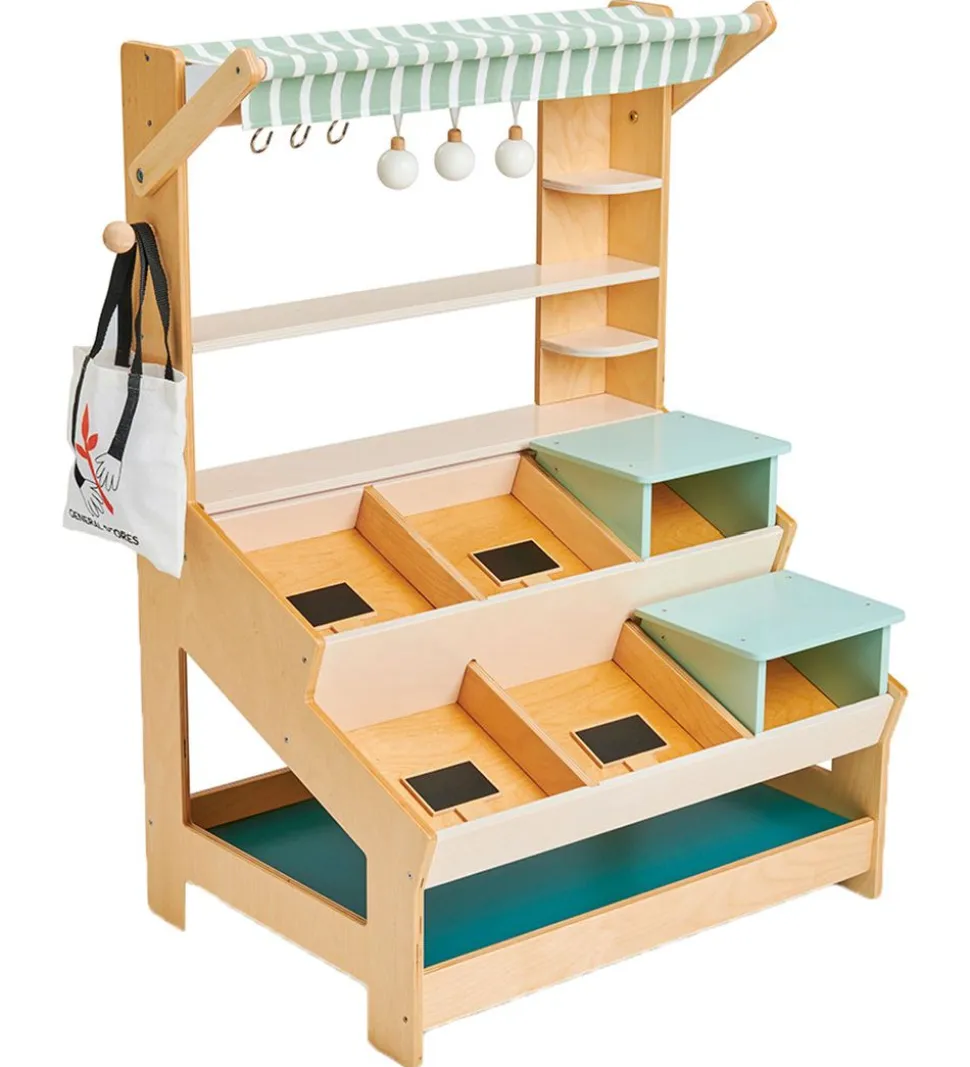 Tender Leaf trælegetøjet byder på mange timers underholdende leg, og det er med til at stimulere og udvikle barnets fantasi, finmotorik, sprog og kommunikation. Barnet kan selv fylde de forskellige kasser op, hvilket kan gøres på nye måder om og om igen.