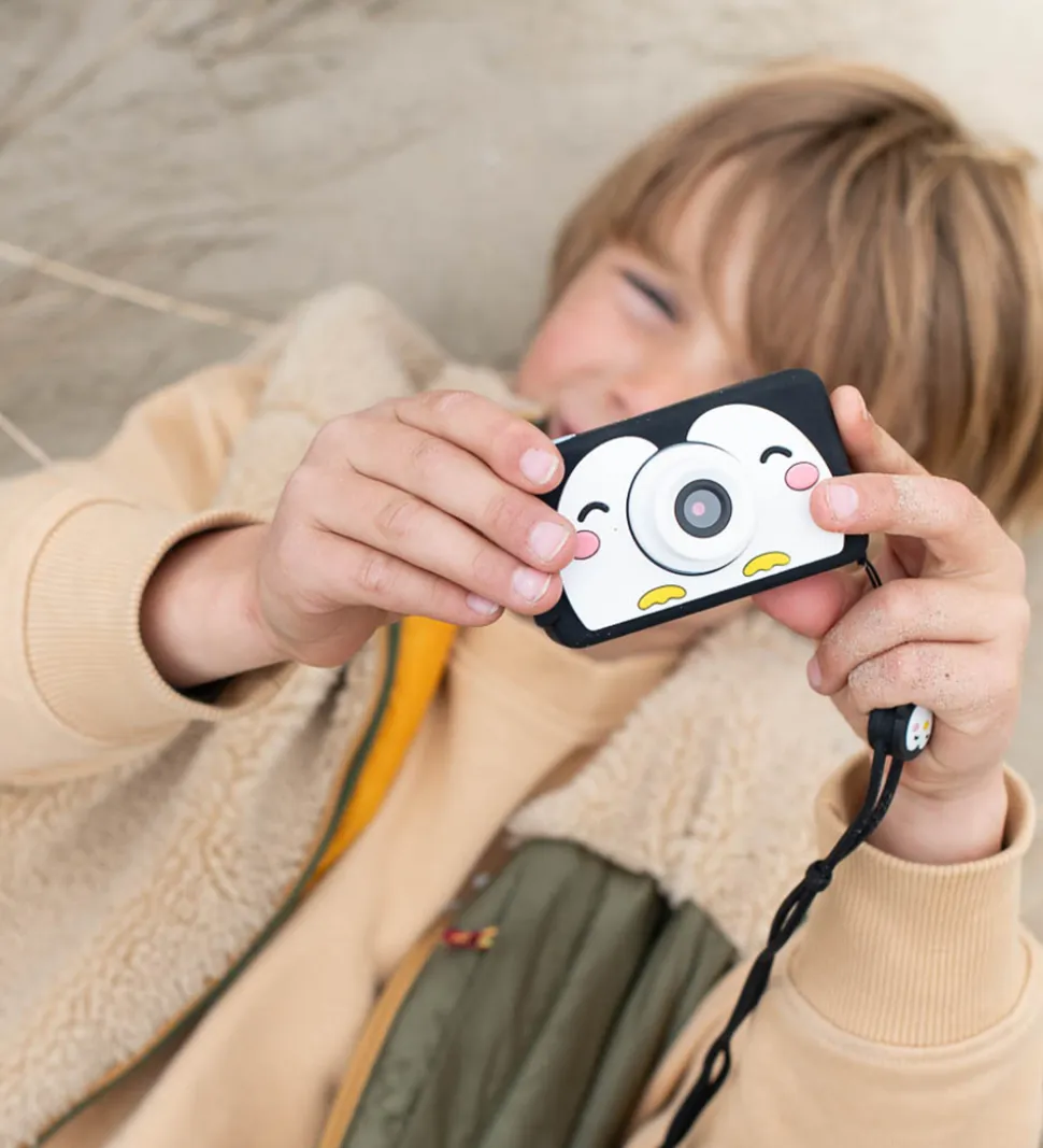 Sjovt The Zoofamily kamera i et pingvindesign fra Zoo Friends-serien. Det søde zoo-dyr er et blødt silikone-sleeve, der beskytter kameraet og ser nuttet ud imens. Der medfølger et klistermærke-ark, så kameraet kan dekoreres i en personlig stil.