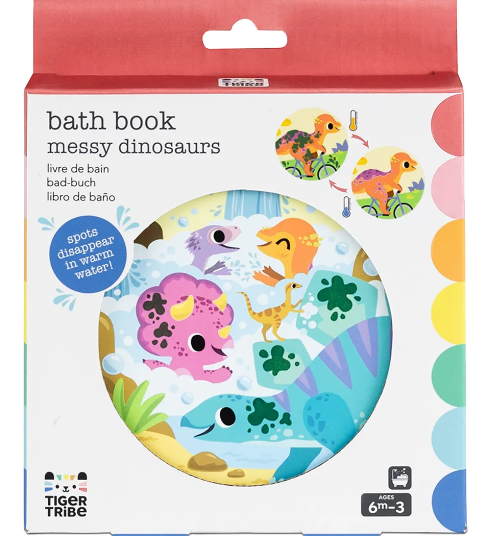 Tiger Tribe badebogen er ideel til badekarret, da bogen er helt vandtæt. Når badebogen kommer i varmt vand, vil printet af mudder på dinosaurerne forsvinde og kommer igen ligeså stille, når badebogen bliver tør. Kanter og hjørner er desuden bløde, så barnet ikke river eller skærer sig på dem.