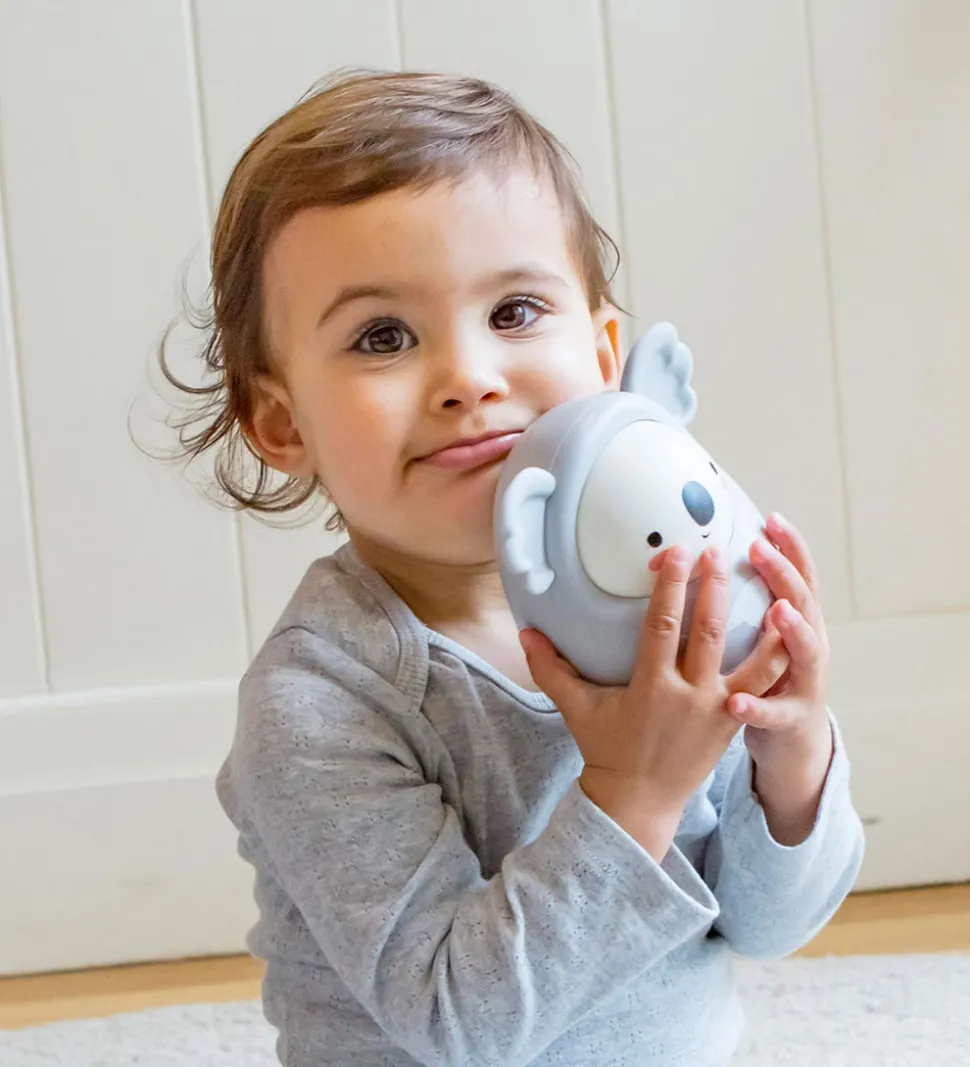 Skønt Tiger Tribe aktivitetslegetøj i form af en koala, som kan puffes til og væltes omkuld, men altid vender tilbage til udgangsposition. Aktivitetslegetøjet giver en skøn bjældeklang, når den bevæges.
