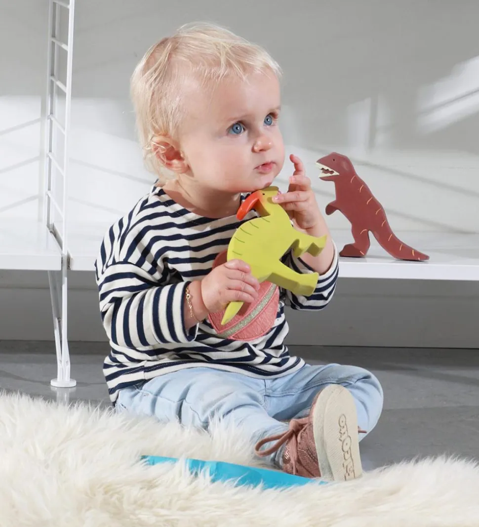 Tikiri dinoen er god underholdning til de små og passer rigtig godt til børn i den tidlige udviklingsfase, da gummimaterialet er formbart og har en sjov tilbagespringende effekt. Dinosauren er nem at få fat i for små fingre, og er også med til at udvikle den taktile udvikling hos barnet. Dinosauren er uden huller, så der ikke danner mug, hvis den bruges i badet.