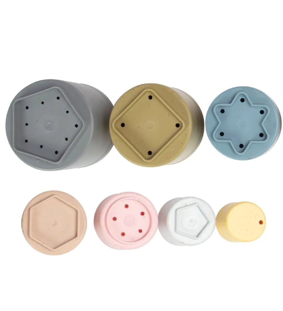 Lækkert Tiny by Dantoy stabelbægre-sæt med 7 forskellige bægre i rolige pastelfarver.