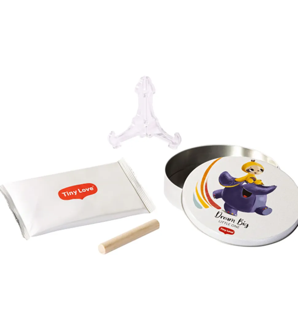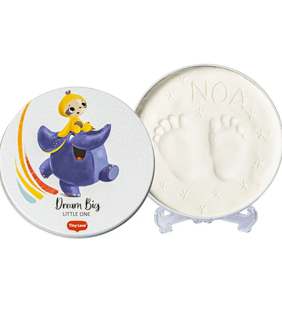 Tiny Love sættet indeholder alt, der skal bruges til at lave et hånd- eller fodaftryk af din baby. Med sættet kan du forevige minder af din baby, og med det medfølgende stativ kan du lade aftrykket stå til pynt i hjemmet eller bruge det som en personlig gave.