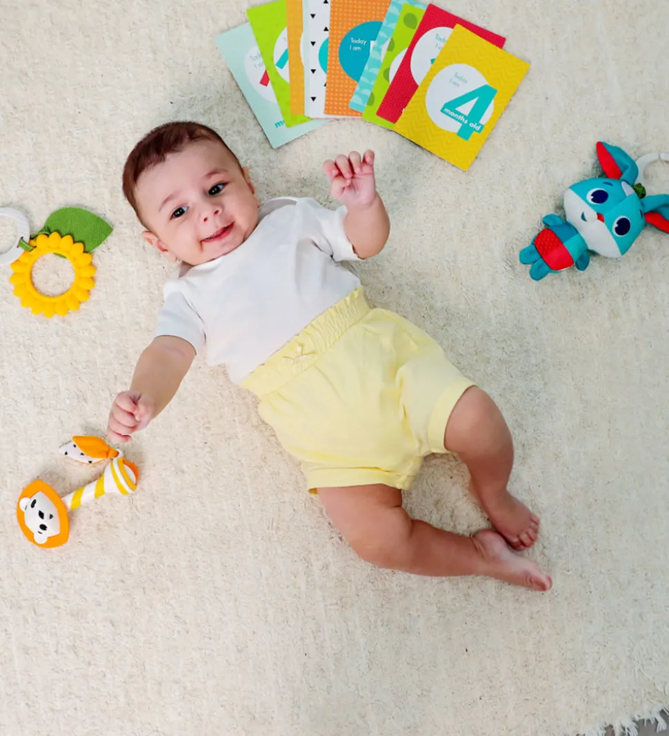 Fint Tiny Love gaveæske med babylegetøj i klare farver. Gaveæske indeholder: