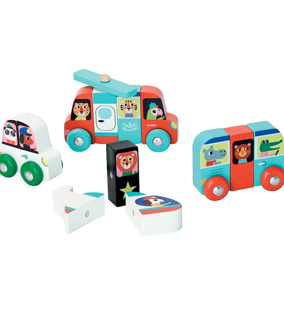 Vilac sættet kommer i en kasse og hvert køretøj består af tre dele, som holdes samlet med magneter. Transportmidlerne kan mixes sammen, da de alle passer sammen. Tre af dem har hjul, mens helikopteren har en propel i toppen. Vilac legetøjet er underholdene og inviterer til mange timers leg og kreativitet.