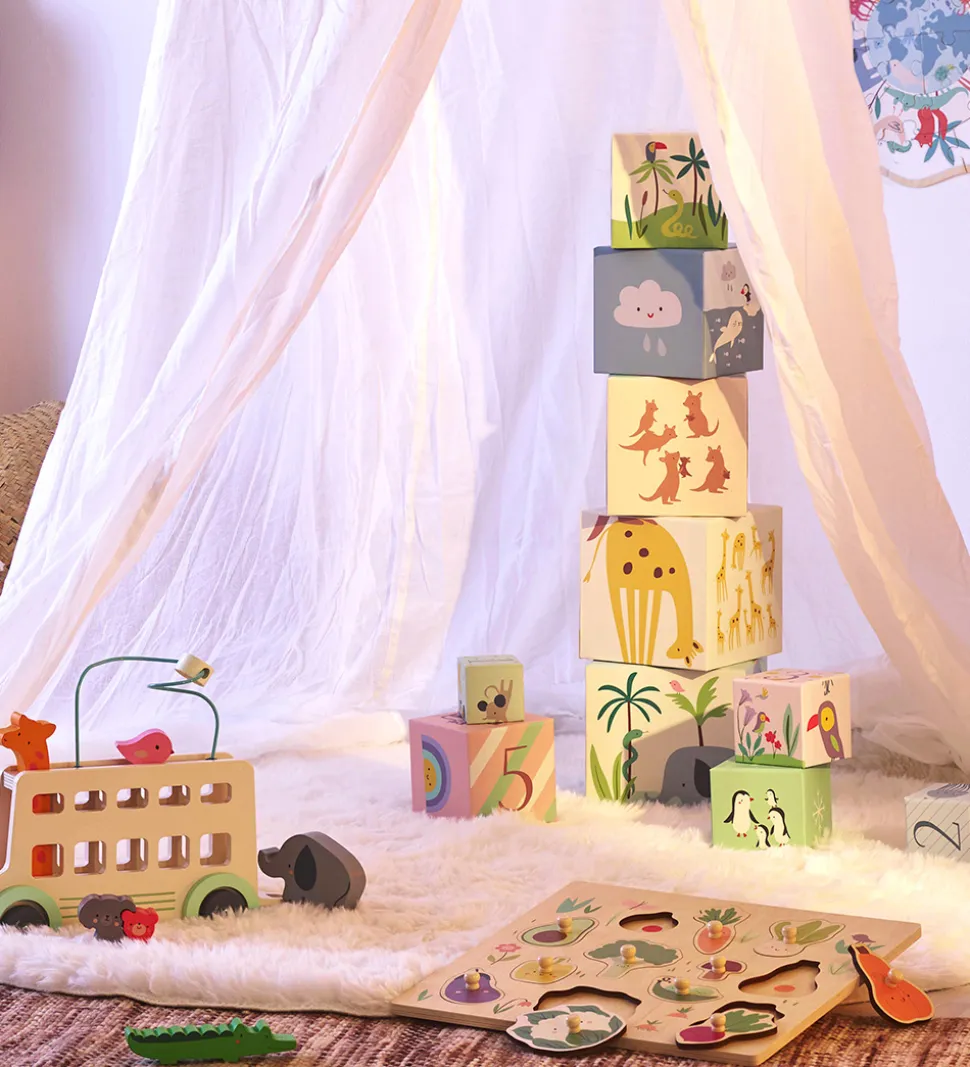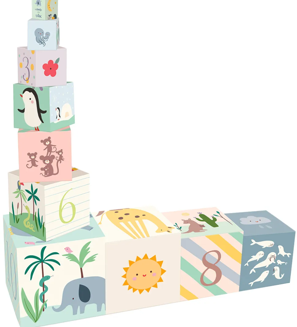 Vilac stableklodserne består af 10 klodser, som kan stables ovenpå hinanden. Klodserne kan bruges som inspiration til læring, leg og motorisk udvikling.