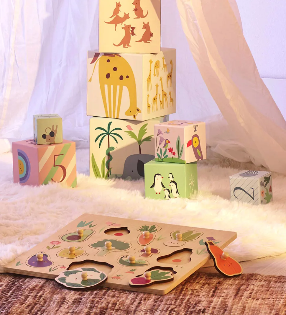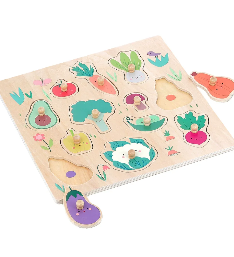 Sjovt Vilac puslespil lavet i træ med forskellige søde grønsager med fine farver.