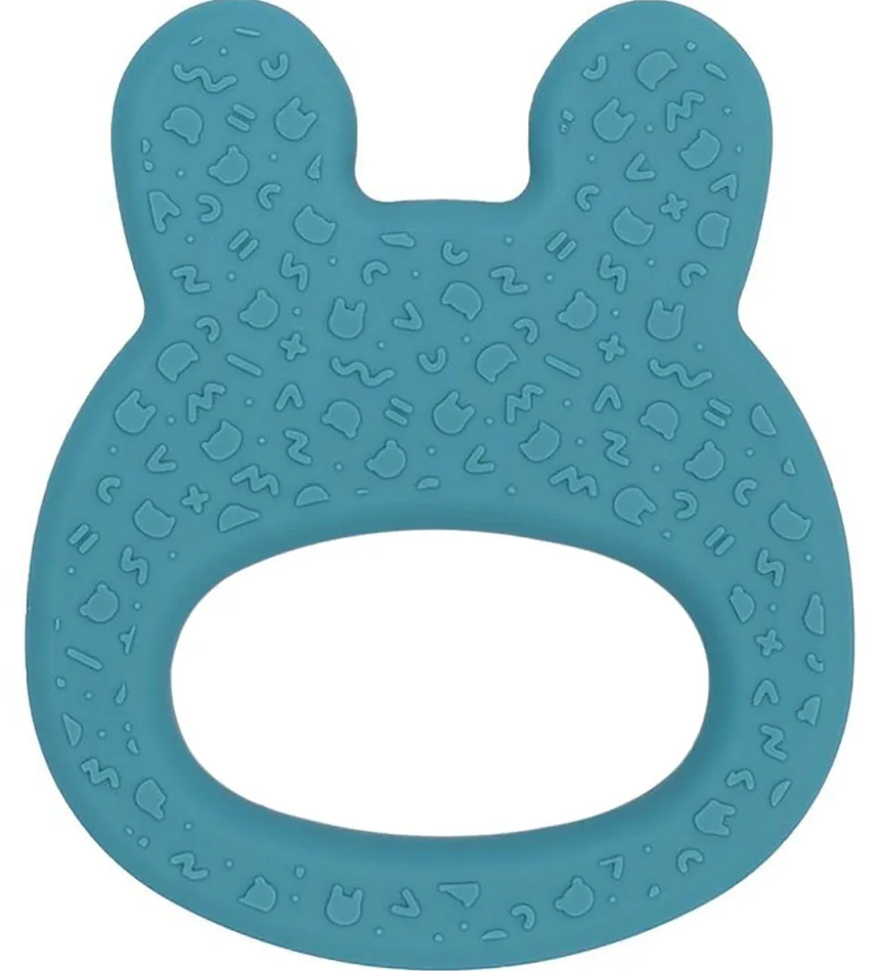 Flot We Might Be Tiny bidering i petroleumsblå silikone med form som et sødt kaninhoved me krydser som øjne.