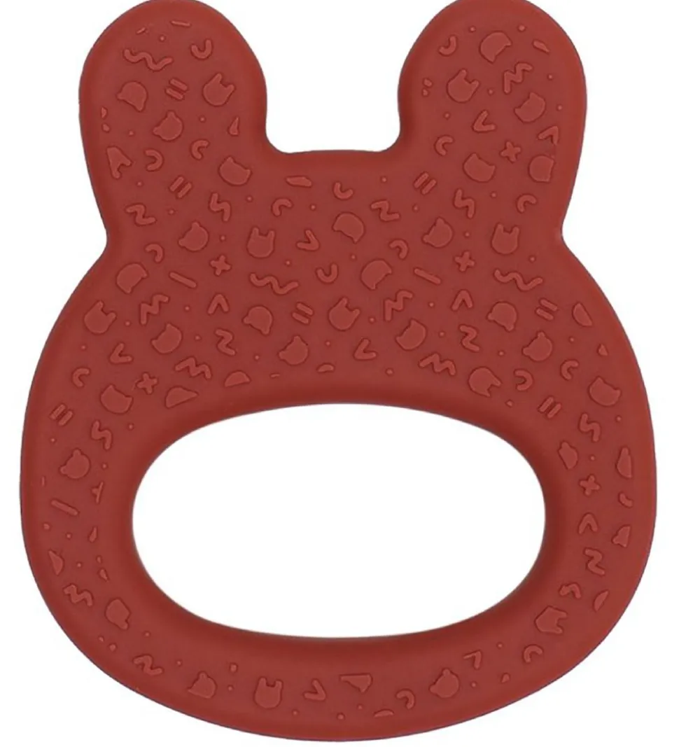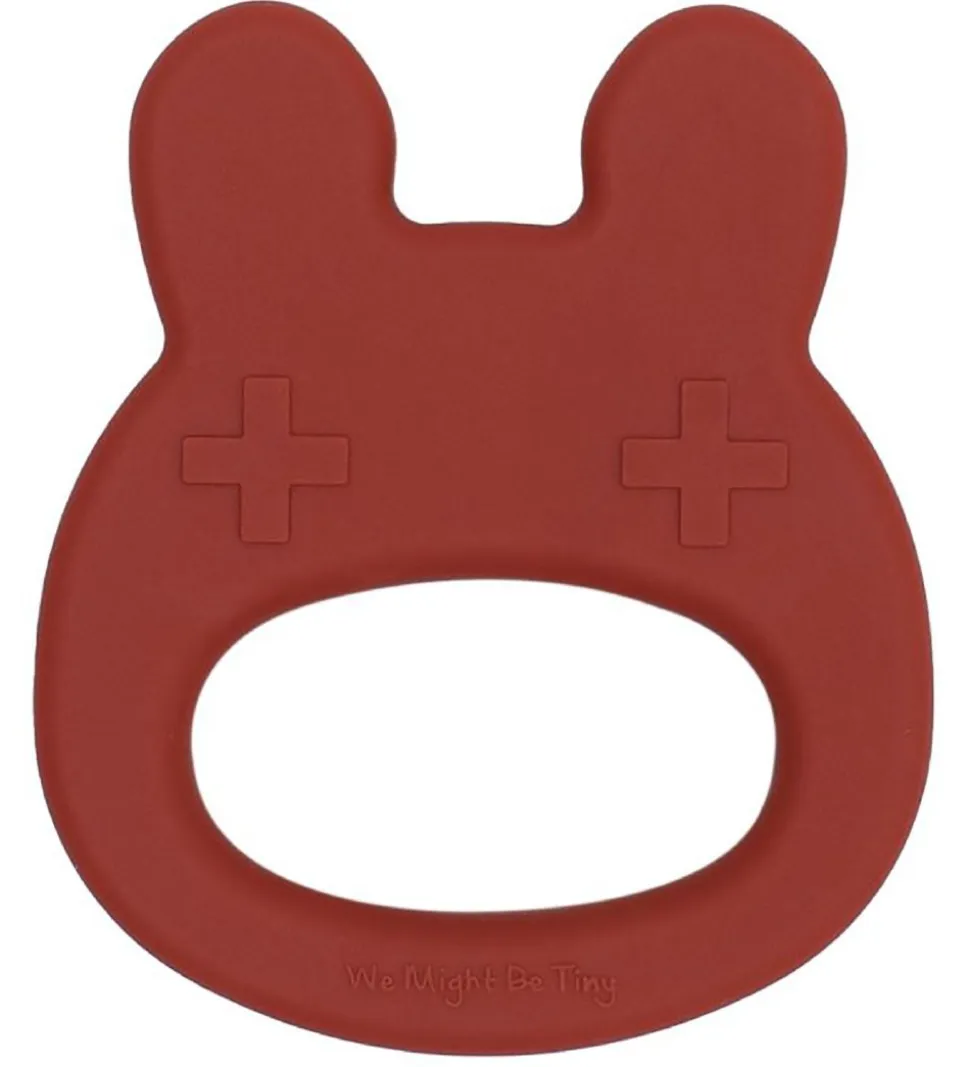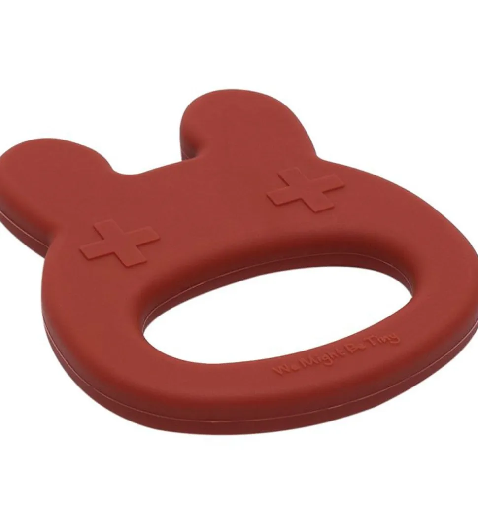 Smart We Might Be Tiny bidering i rustrød silikone med form som et sødt kaninhoved me krydser som øjne.