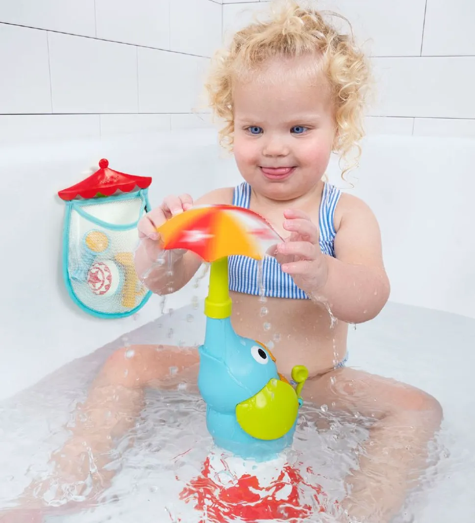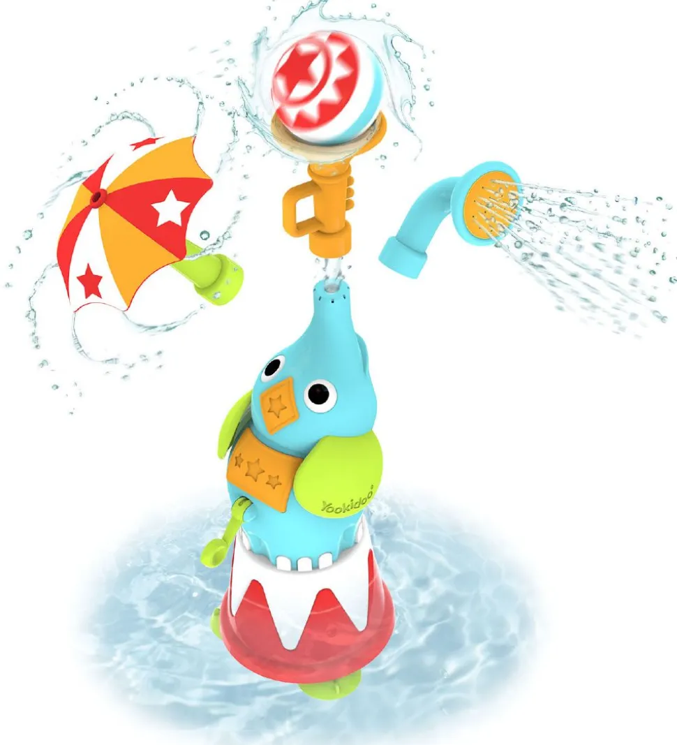 Yookidoo badelegetøjet vil med garanti udløse barnets fantasi og kreativitet. Elefanten kan stå i badekarret. De tre dele har forskellige vandeffekter, og de kan sættes fast på elefantens snabel. Elefantens snabel kan også sprøjte vand ud til siderne ved at putte fingeren i den snabel. Elefanten er batteridrevet, og barnet kan derfor overvære et vandshow uden at skulle gøre noget. Elefanten kan tænde og slukkes på det grønne håndtag bagpå.