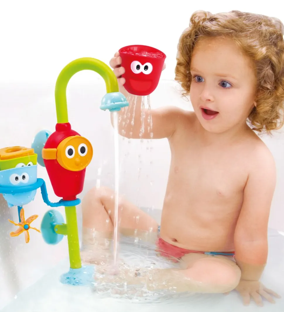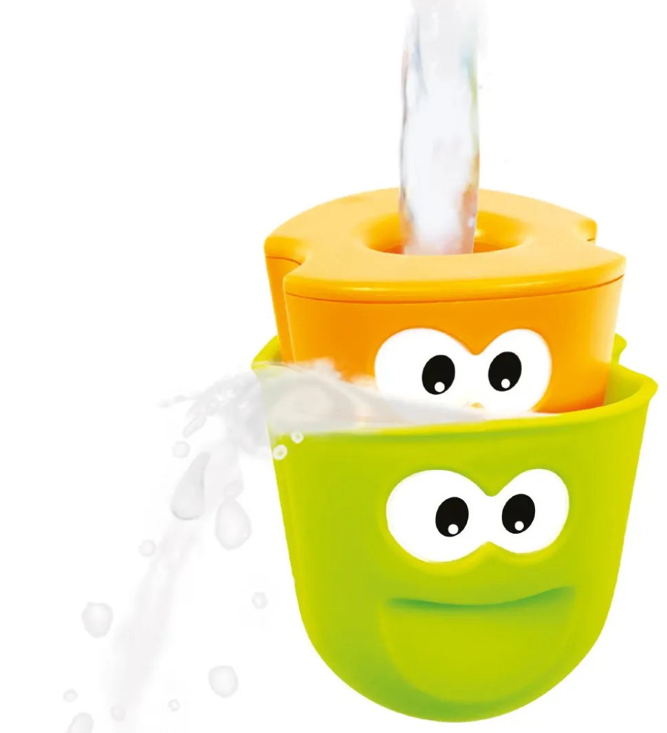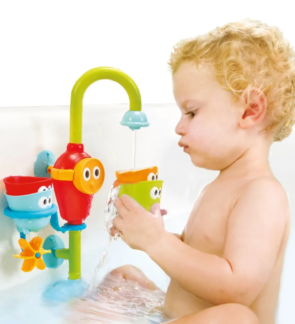 Yookidoo badelegetøjet vil med sikkerhed gøre tiden i badet sjovt. Vandpumpen sættes fast med sugekopper på badekarret eller væggen, med den nederste del forbliver i vandet. Herefter kan barnet pumpe vandet ud af pumpens tud. De små kopper har forskellige vandeffekter, som kan undersøges i timevis. Kopperne kan stables på mange forskellige måder, det er kun fantasien der sætter grænser.