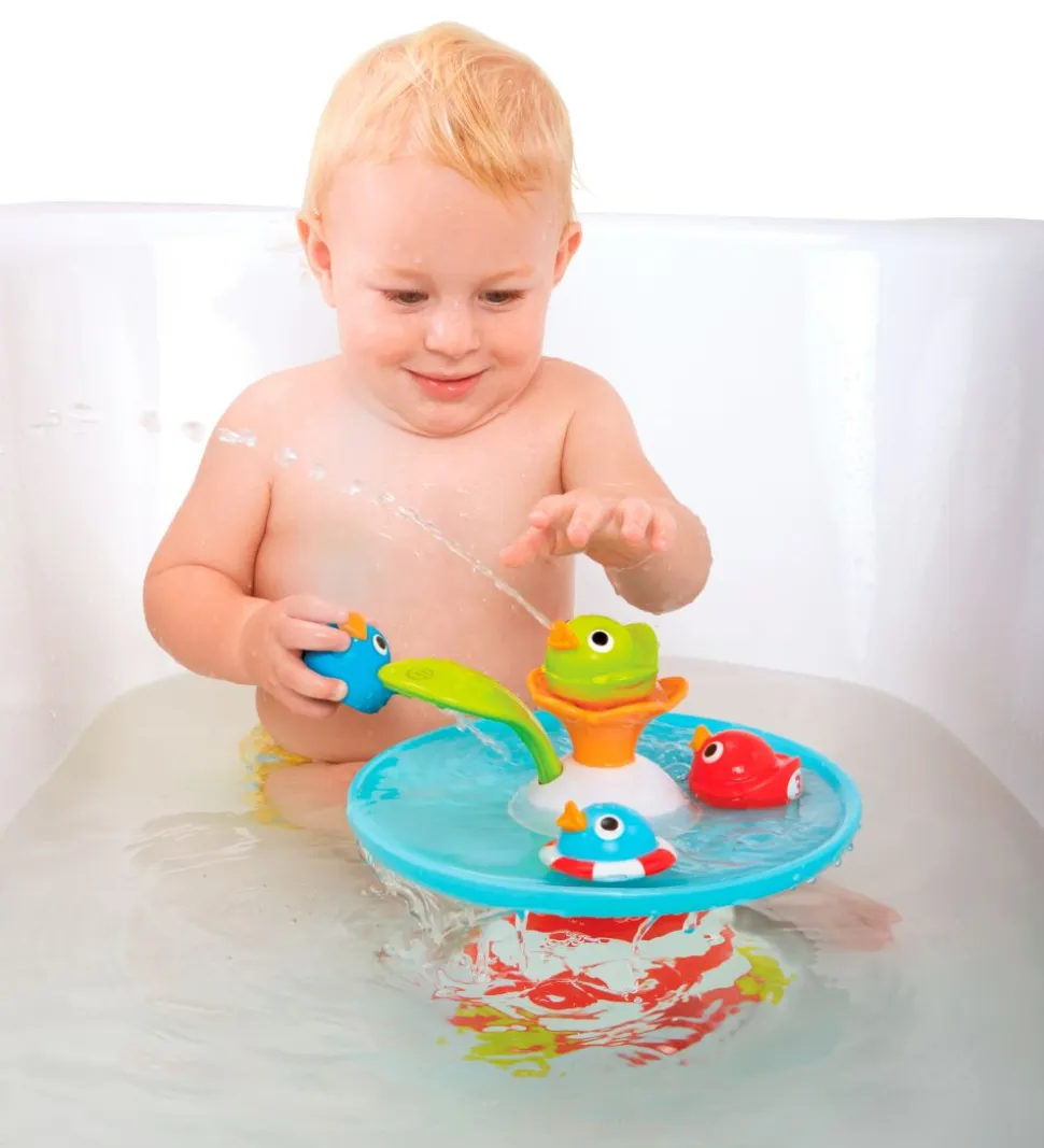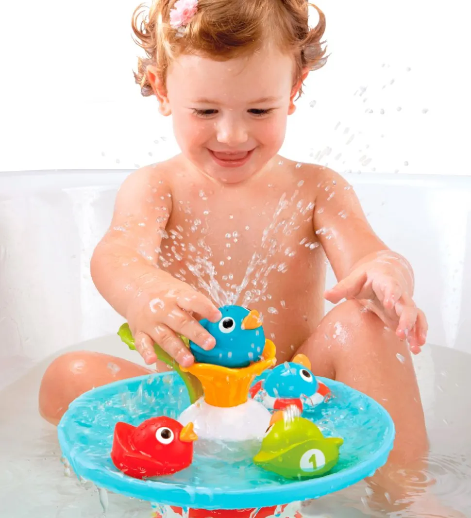 Yookidoo badelegetøjet vil med sikkerhed gøre tiden i badet sjov. Vandpumpen sættes fast med sugekopper på bunden af badekarret. Herefter kan barnet skyde med vandet gennem ænderne, ved at trykke på det grønne håndtag. De små ænder har forskellige vandeffekter, som kan undersøges i timevis og kører rundt påtoppen og racer med hinanden.