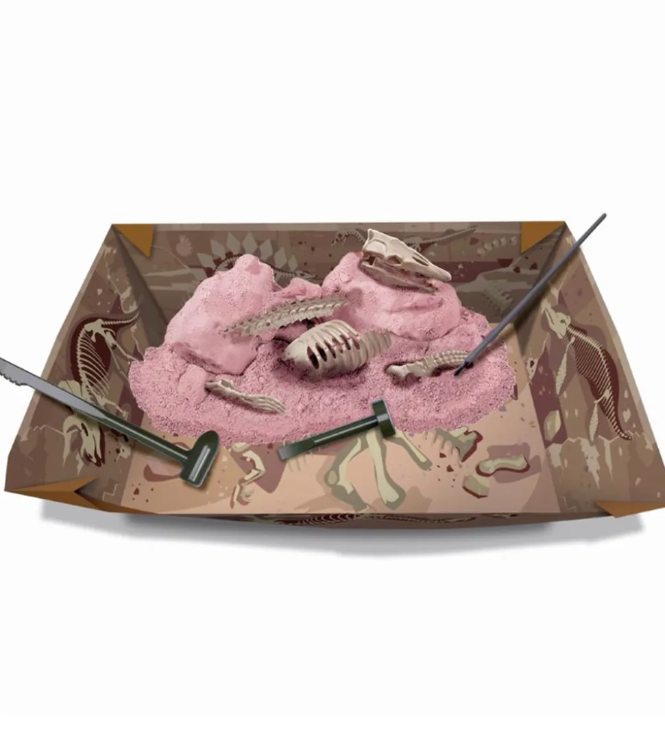 4M mosasaurus udgravnings sættet indeholder grave værktøjer og en stor sten, med et mosasaurus skelet i. Når skeletet er gravet fri kan det samles til en model som er 21 cm lang.