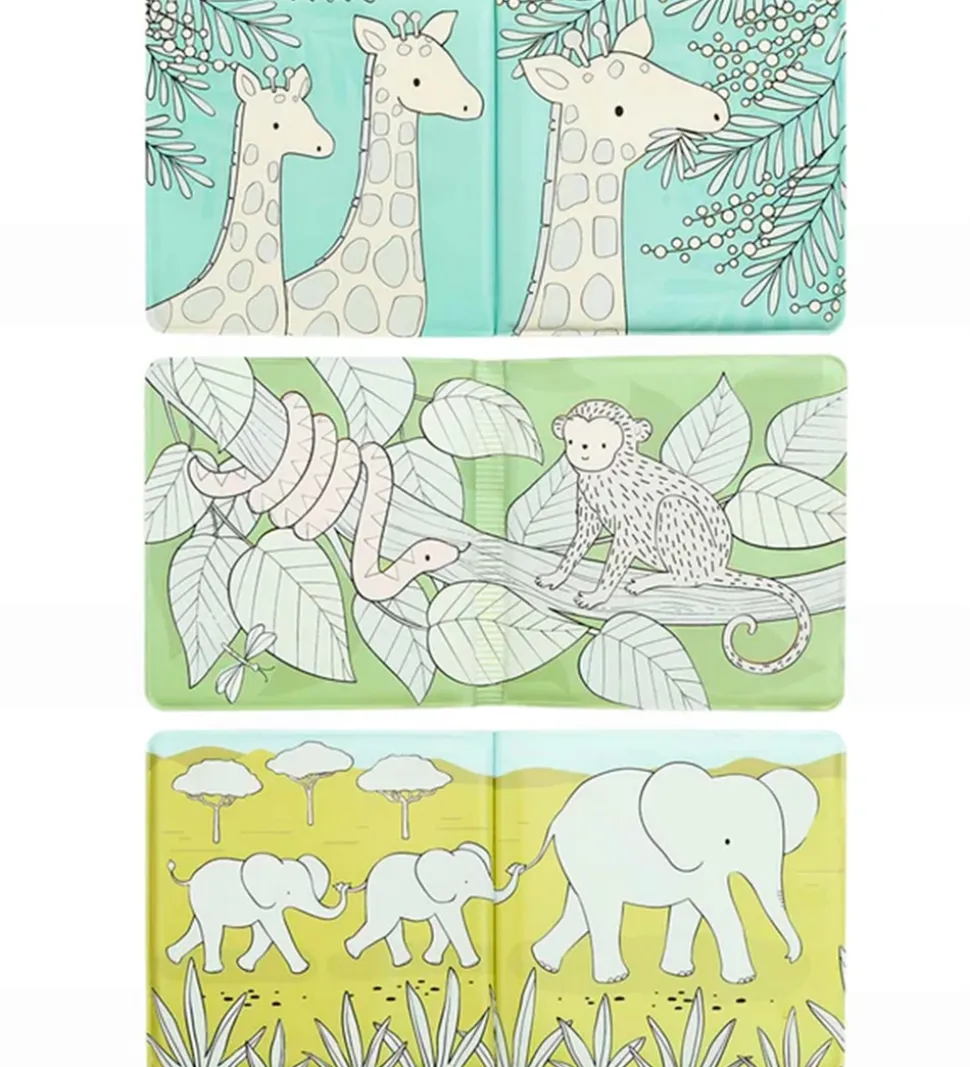 Flot A Little Lovely Company badebog med motiver af dyr, som bor på savannen.