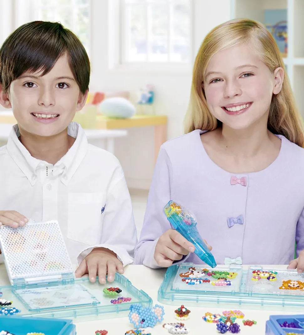 Aquabeads perlerne er med til at styrke barnets kreativitet, samtidig med at udvikle finmotorikken på en sjov og spændende måde. Perlerne tørrer ved hjælp af vand. Lav en kreation, spray med vand og lad kreationen tørre.