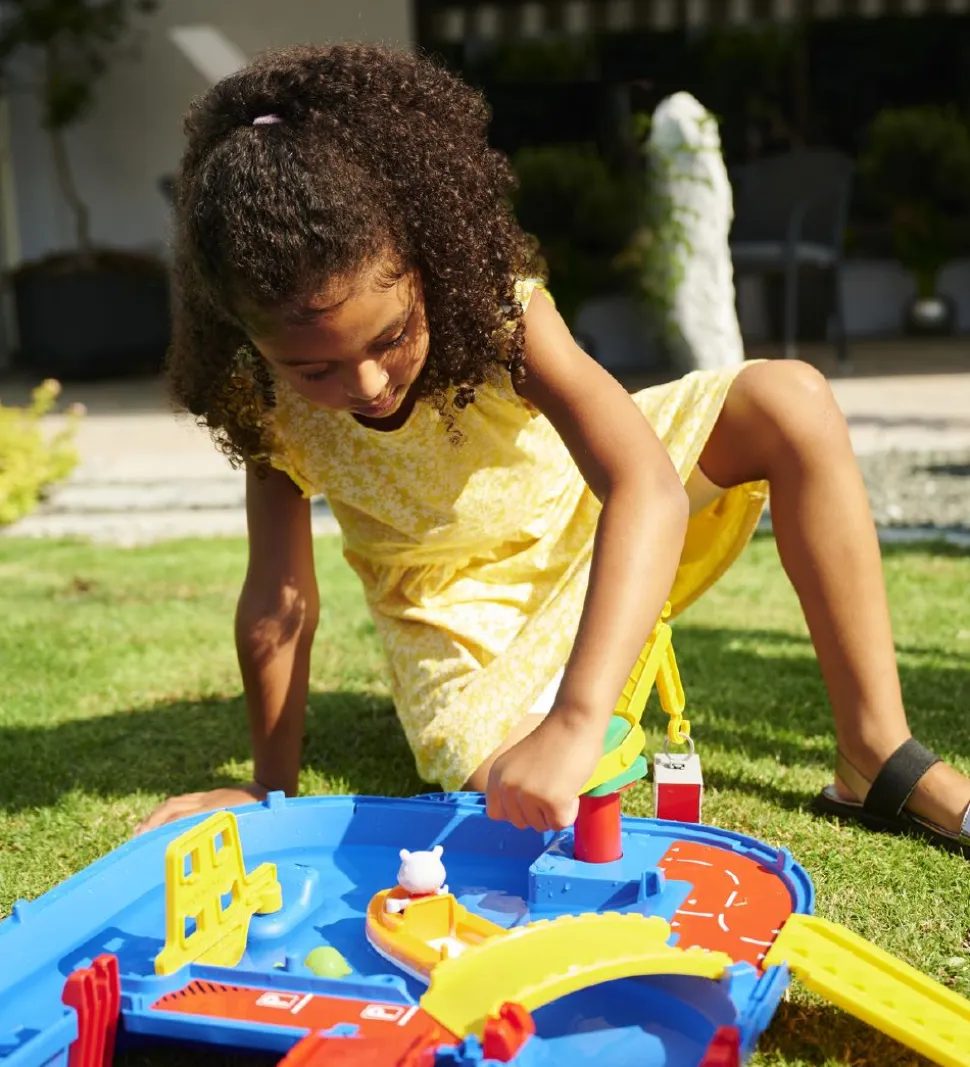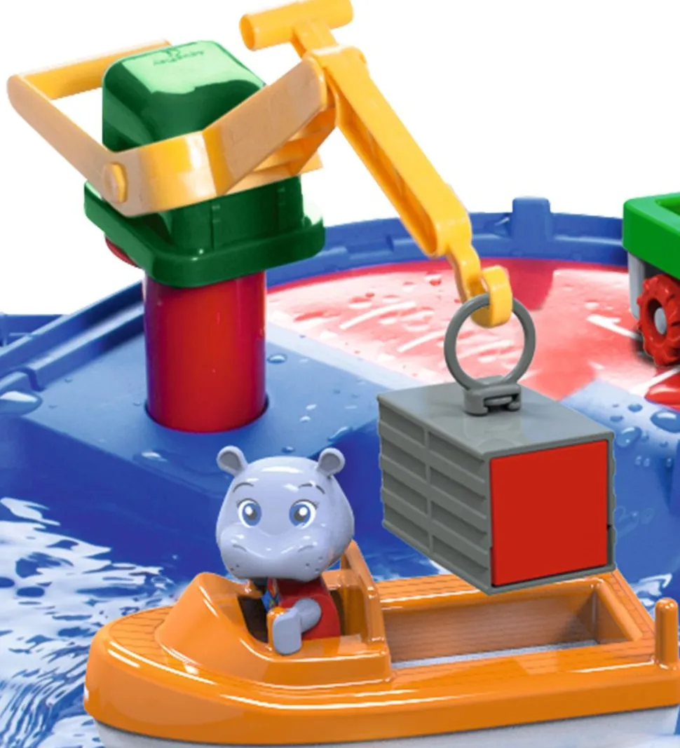 AquaPlay legesættet er beregnet til sjov med vand, hvor alle kan være med. Børnene kan ved hjælp af håndsving, broer, pumper og sluse finde på masser af sjove ting at gøre med vandet. Vandkanalen har brede vandveje og ved at dreje håndsvinget kan bådene sejle rundt. Sættet stimulerer børnenes kreativitet og fantasi.