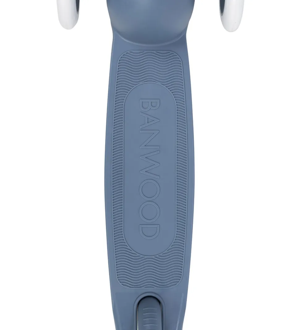 Banwood løbehjulet har to store hjul foran og et lille hjul bagpå med en fodbremse. Det er at styre med Banwoods “Easy Ride Steering System”. Løbehjulet har en bred plade med en praktisk struktur, så barnet står stabilt.
