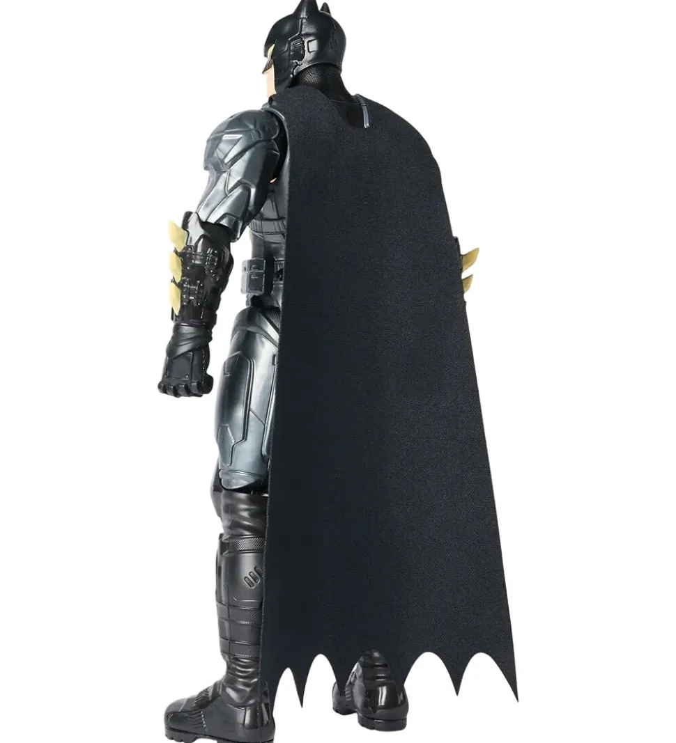 Fantastisk Batman actionfigur i mørkegrå med sorte detaljer og et gult logo på brystet, som kan lyse op. Batman actionfiguren er designet med imponerende detaljer, og kan afspille 24 forskellige lyde og sætninger, når den trykkes på brystet. Actionsfiguren har bevægelige led, så den kan stå i forskellige positurer.