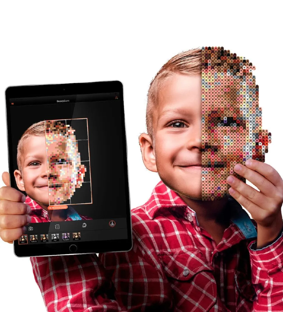 Med Beady appen kan man lægge perlepladen ovenpå tabletten eller mobilen, hvorefter piggene vil lyse op, så man kan se, hvor perlerne skal placeres. Pladerne kan klikkes sammen på kryds og tværs, så motivet bliver større. Man kan også tage sine egne billeder med Beady Cam for at få sit helt egne, unikke motiver.
