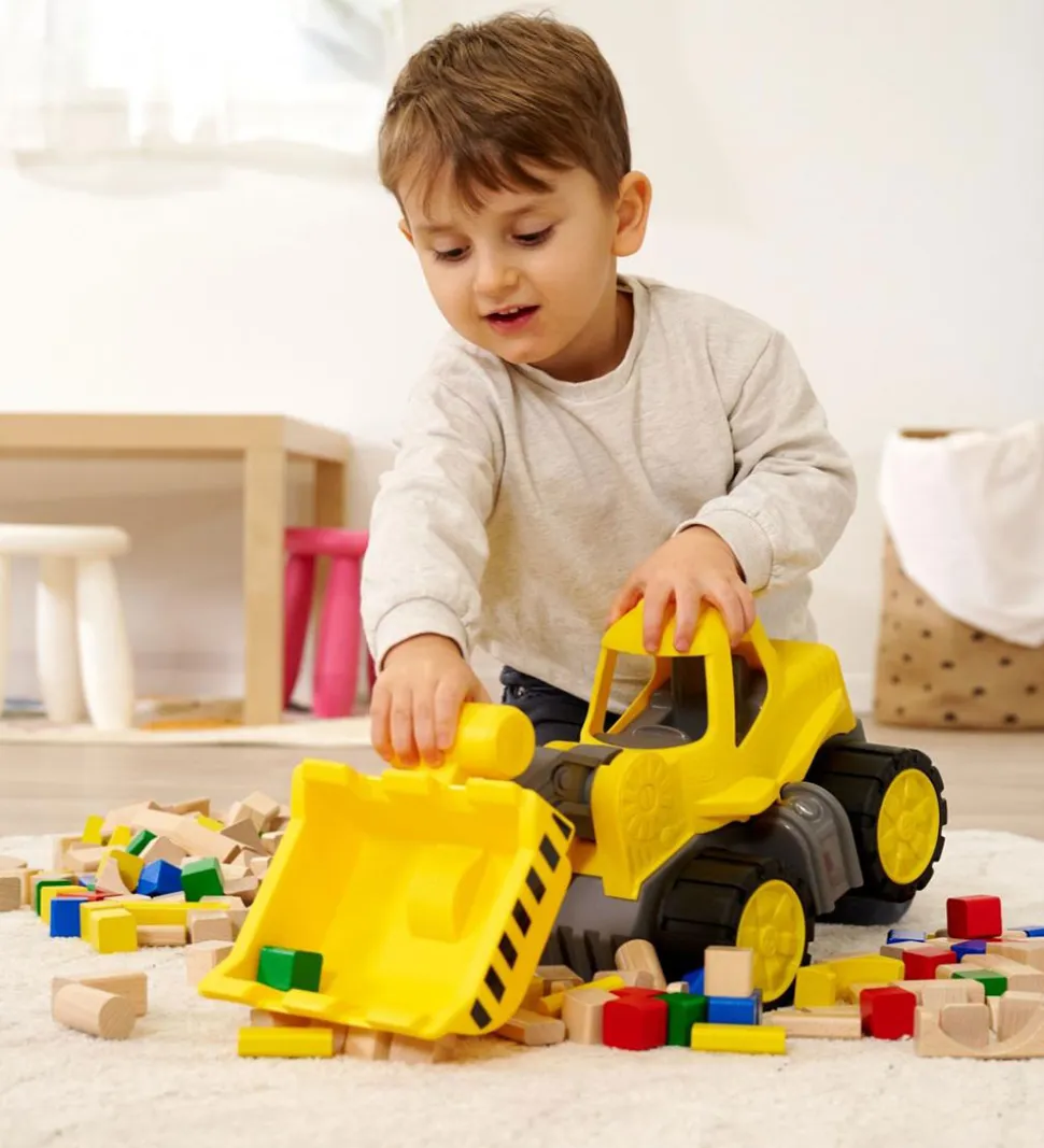 Hjullæsseren kan opsamle, transportere og dumpe sand, sten, legetøj og andet med skovlen foran. Den har store dæk, der er fremstillet i blødt materiale, som er skånsom for gulve. Hjullæsseren kan bruges både indendørs og udendørs og bidrager til sjove og kreative lege.
