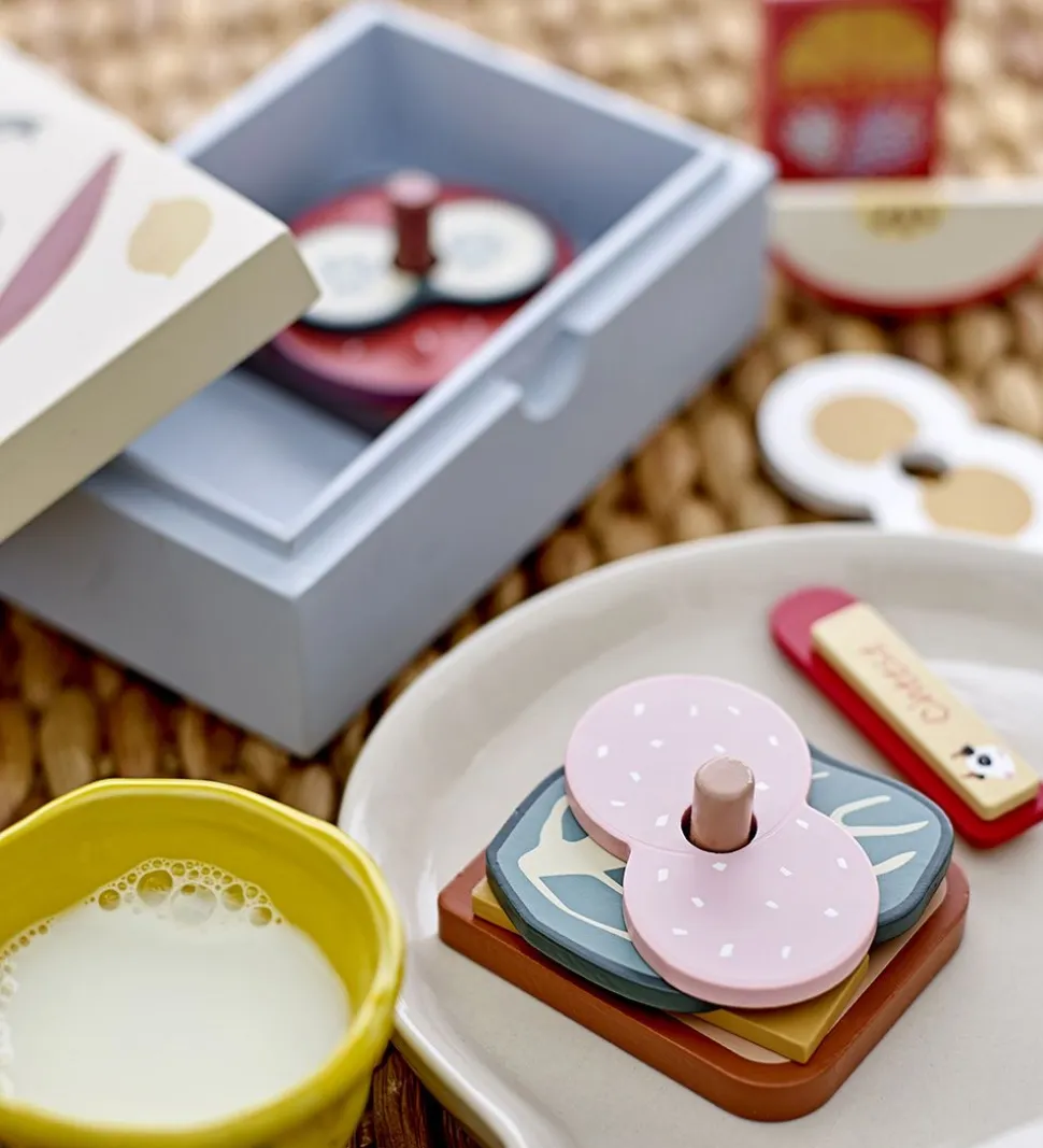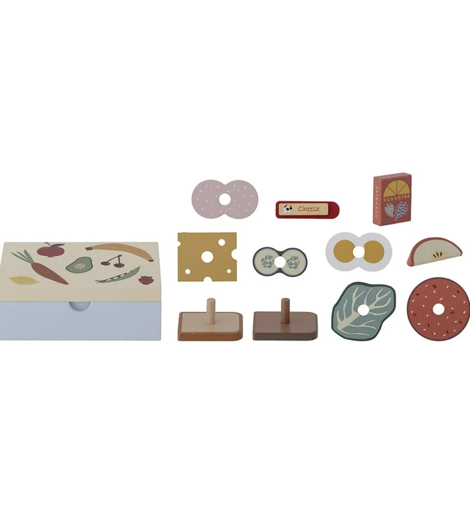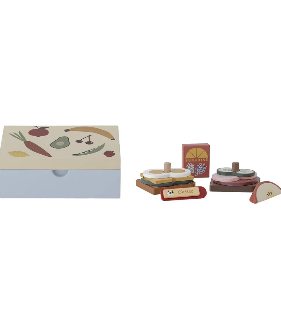 Sjovt Bloomingville legetøjsmadkasse bestående af en madkasse med 11 forskellige madvarer.