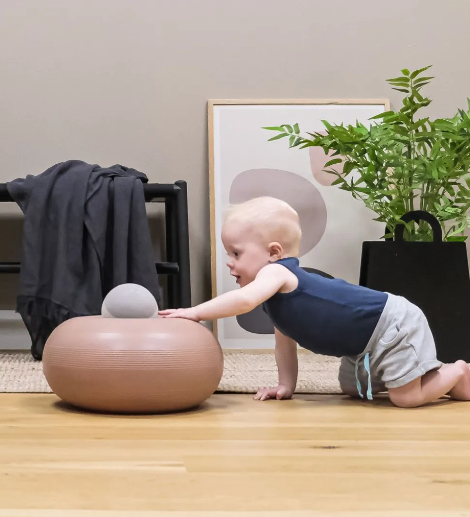 Hvis man trykker donutten ned mod gulvet, opstår der et vacuum, så den sætter sig fast. Så har man en sjov og stabil pude, der fungerer som afsæt til masser af tumleleg. Det er kun fantasien, der sætter grænser.