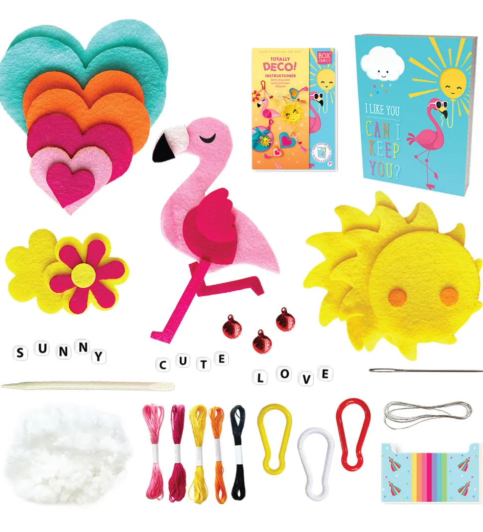 Spændende BOX CANDIY kreasæt i form af dette rygsækcharms i filt-kunstsæt med temaet “Totally Deco”.