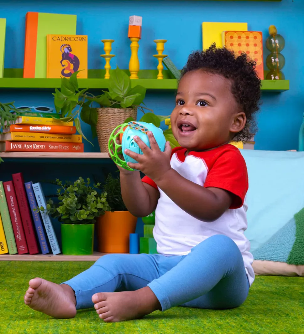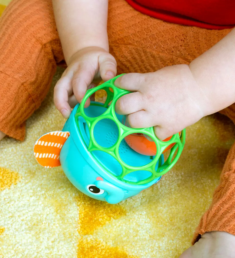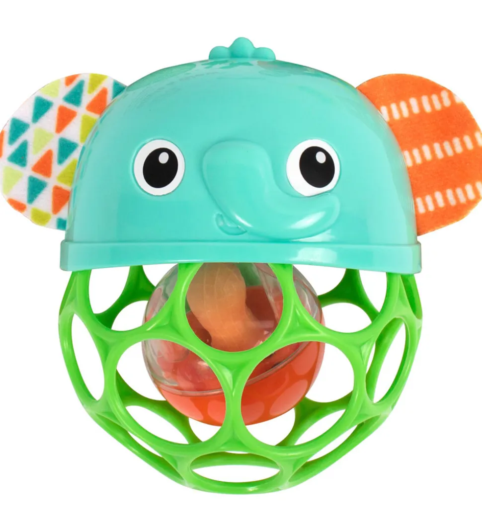 Bright Starts legetøjet er et sjovt rystelegetøj med sjove lyde og er lavet af fleksibel og holdbart Oball-teknologi som er nemt for baby at holde om. Legetøjet har masser af storer huller som gør det nemt for baby at gribe fat i. Indeni er en sjov bold med rasleperler indeni, som laver sjove lyde når den rystes, og som en ekstra detalje er elefantens ører lavet a tekstil som rynker når baby røre ved dem. Legetøjet har også en praktisk tænd- og slukknap.