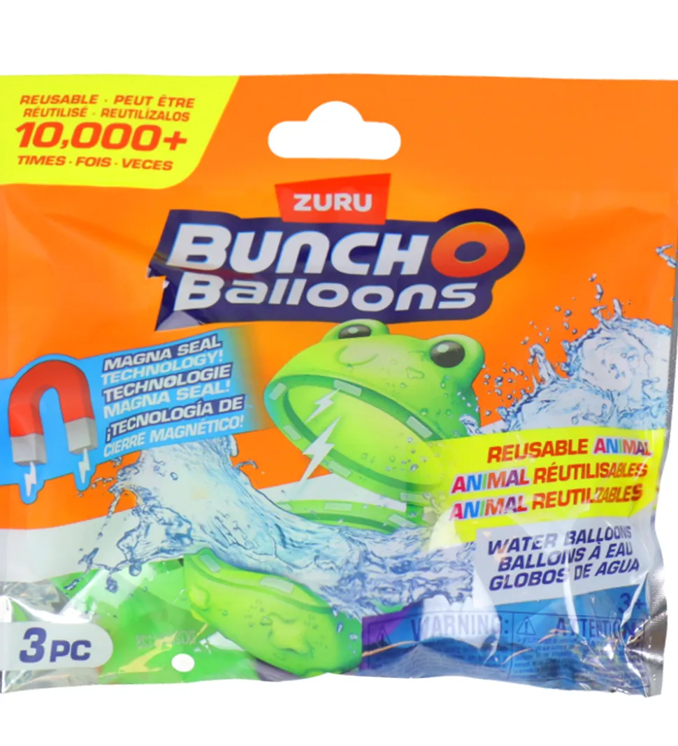 Sjovt Bunch O Balloons vandlegetøj i form af dette sæt med 3 genanvendelige vandballoner med dyredesign i festlige farver.