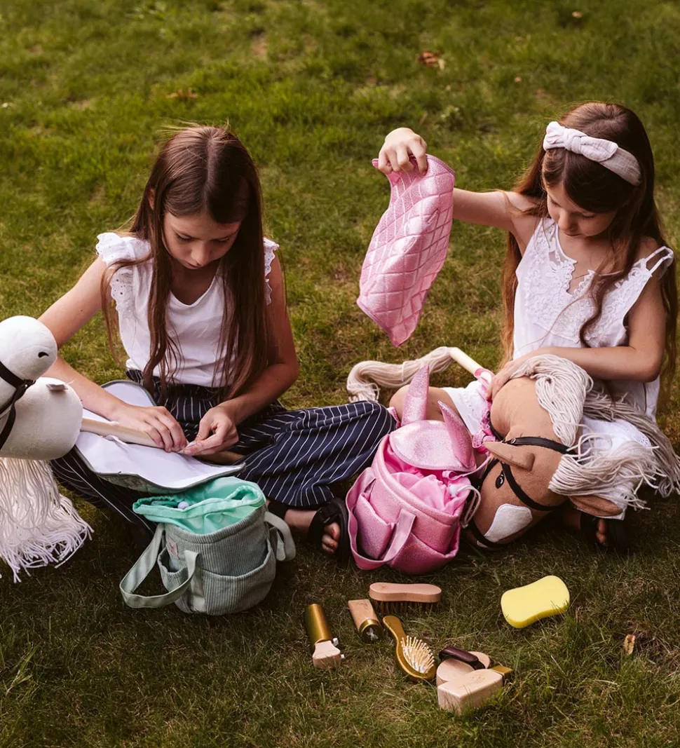 by ASTRUP strigletasken til kæpheste er perfekt tilbehør, når der skal leges rideskole, ridder, ridekonkurrence og meget andet. Strigletasken har ét stort rum med snørelukning samt fire praktiske, udvendige stiklommer. Den har to hanke til at bære den i. Strigletasken kan f.eks. rumme by Astrups striglesæt til kæpheste.