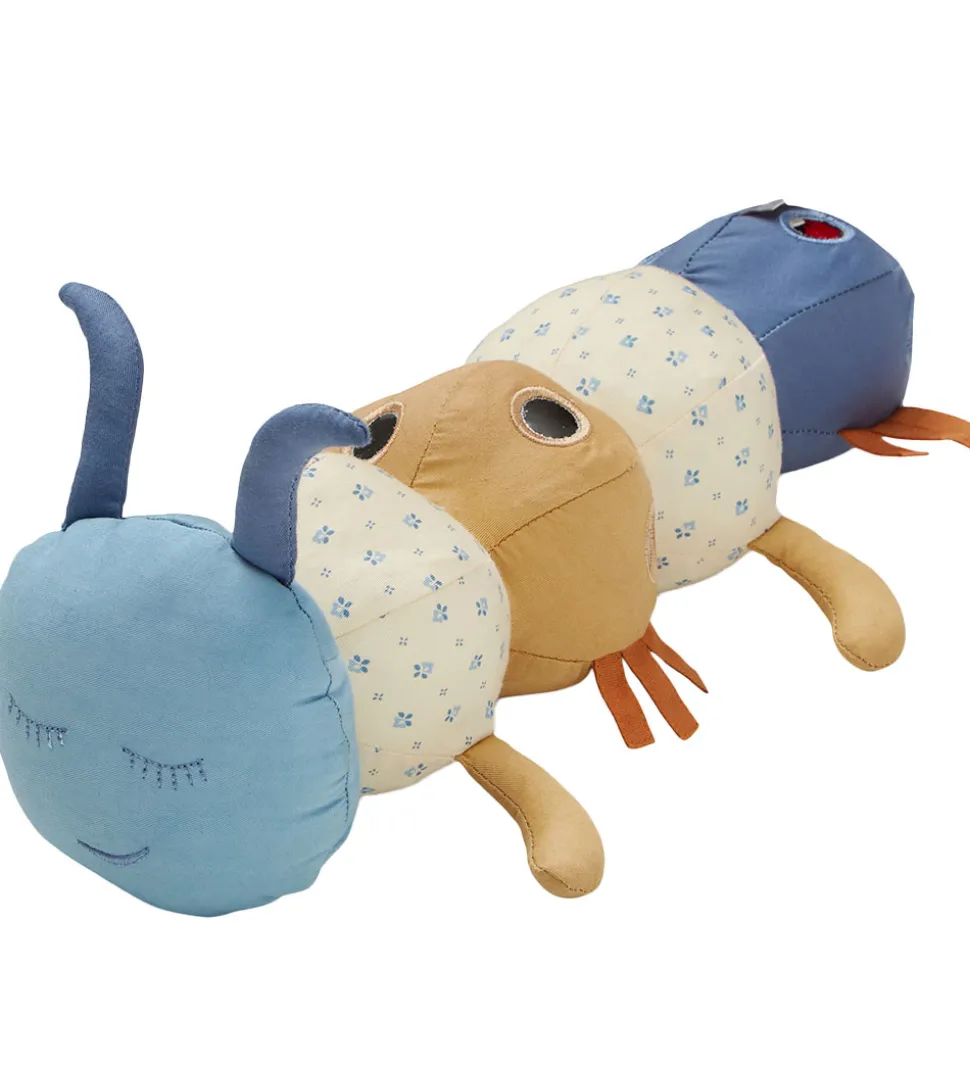 Cam Cam Copenhagen aktivitetslegetøjet har form som en larve med dekorationer, som er sjove for det lille barn at udforske. Der er detaljer, som knitrer, andre rasler, og der er små spejle samt en givefunktion og en klokke. Larven er lavet i en lækker bomuldskvalitet med et blødt fyld, og den er sjov for de små at lege med.