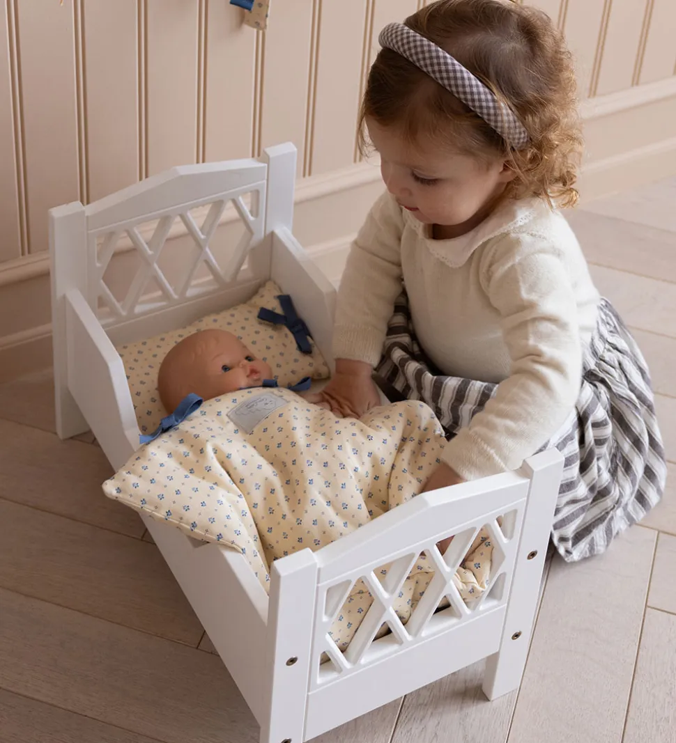 Cam Cam Copenhagen dukkesengetøjet består af en vatteret dyne og hovedpude med et aftageligt betræk, der lukkes med en skjult lynlås. Sengetøjet passer perfekt til Cam Cam Copenhagen dukkesengen og dukkeliften, som vil sørge for, at dukken kan sove godt og trygt.