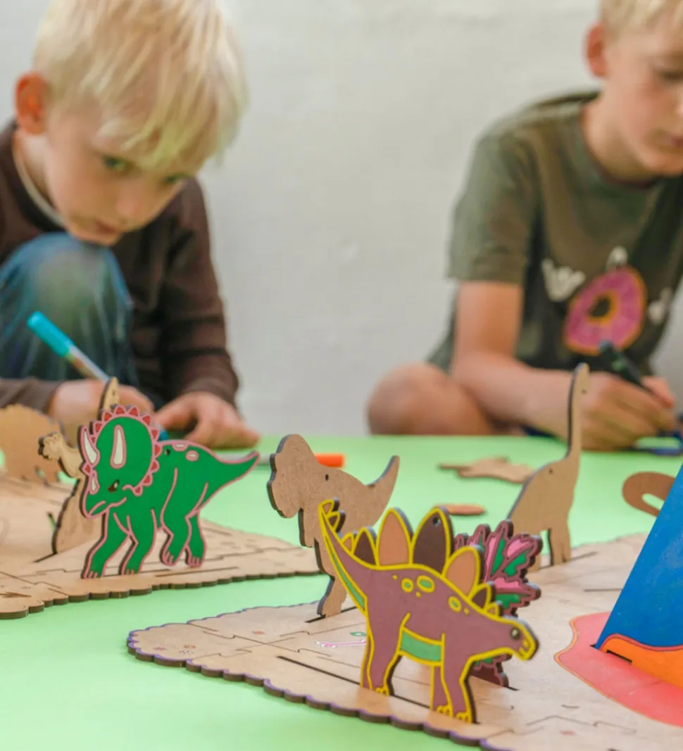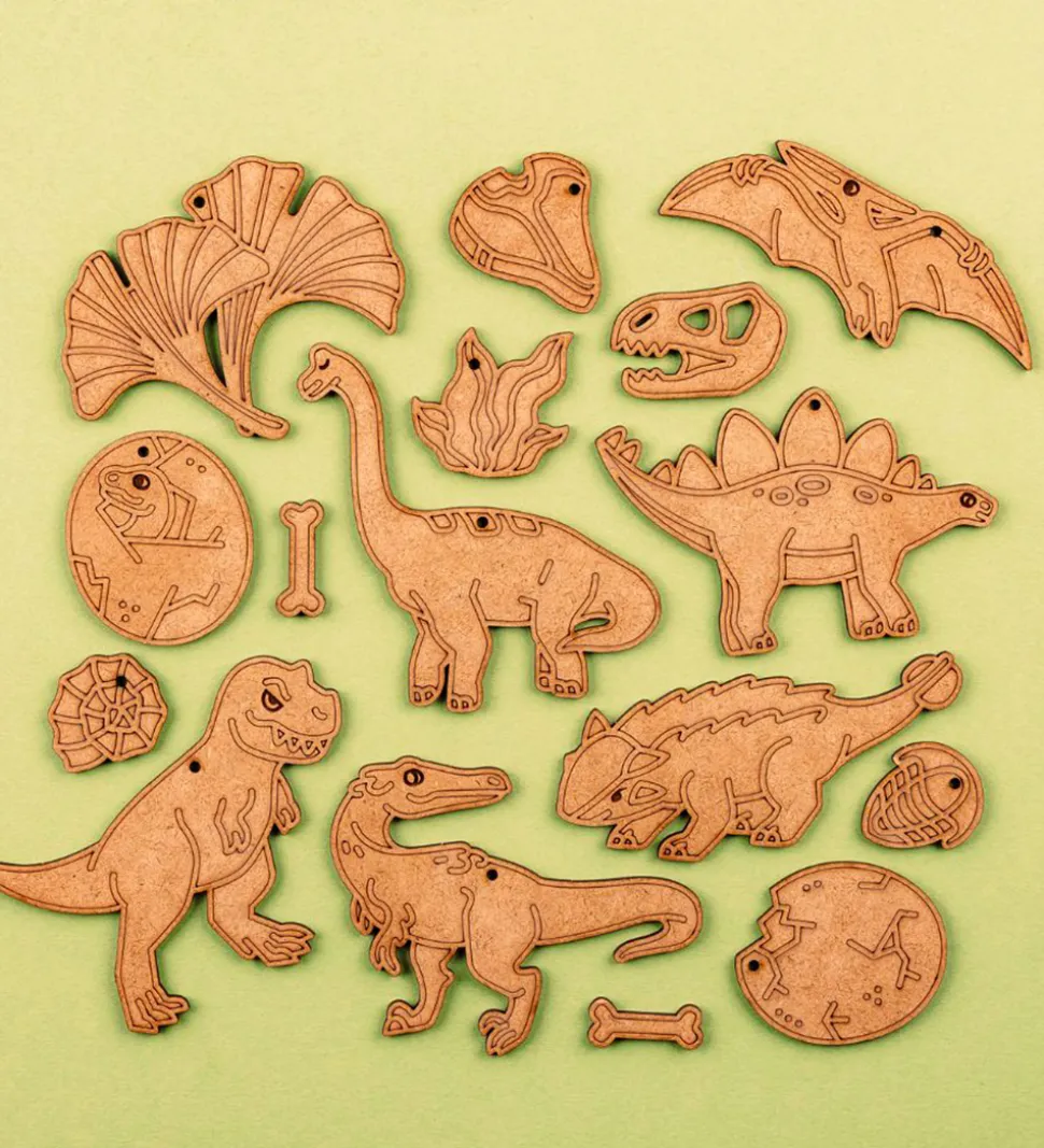 Hyggeligt Crateit kreatsæt i form af fine figurer af HDF-træplader i et forhistoriske opdagelser-tema.