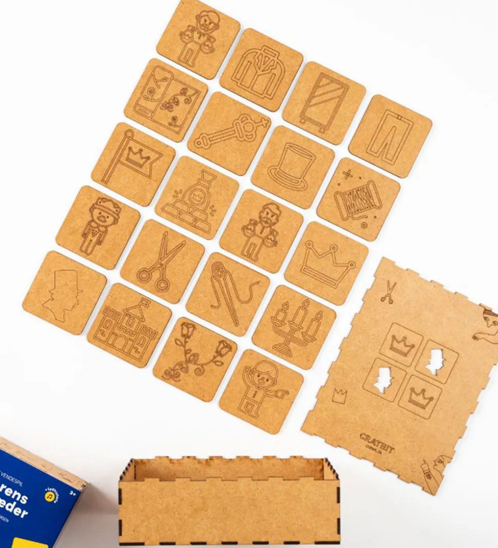 Hyggeligt Crateit vendespil med motiver fra Kejserens nye klæder. Til vendespillet har Crateit også lavet en lydhistorie; H.C. Andersens klassiske eventyr “Kejserens nye klæder”, som børnene kan lytte til på Crateits hjemmeside. Lydhistorien er på dansk.