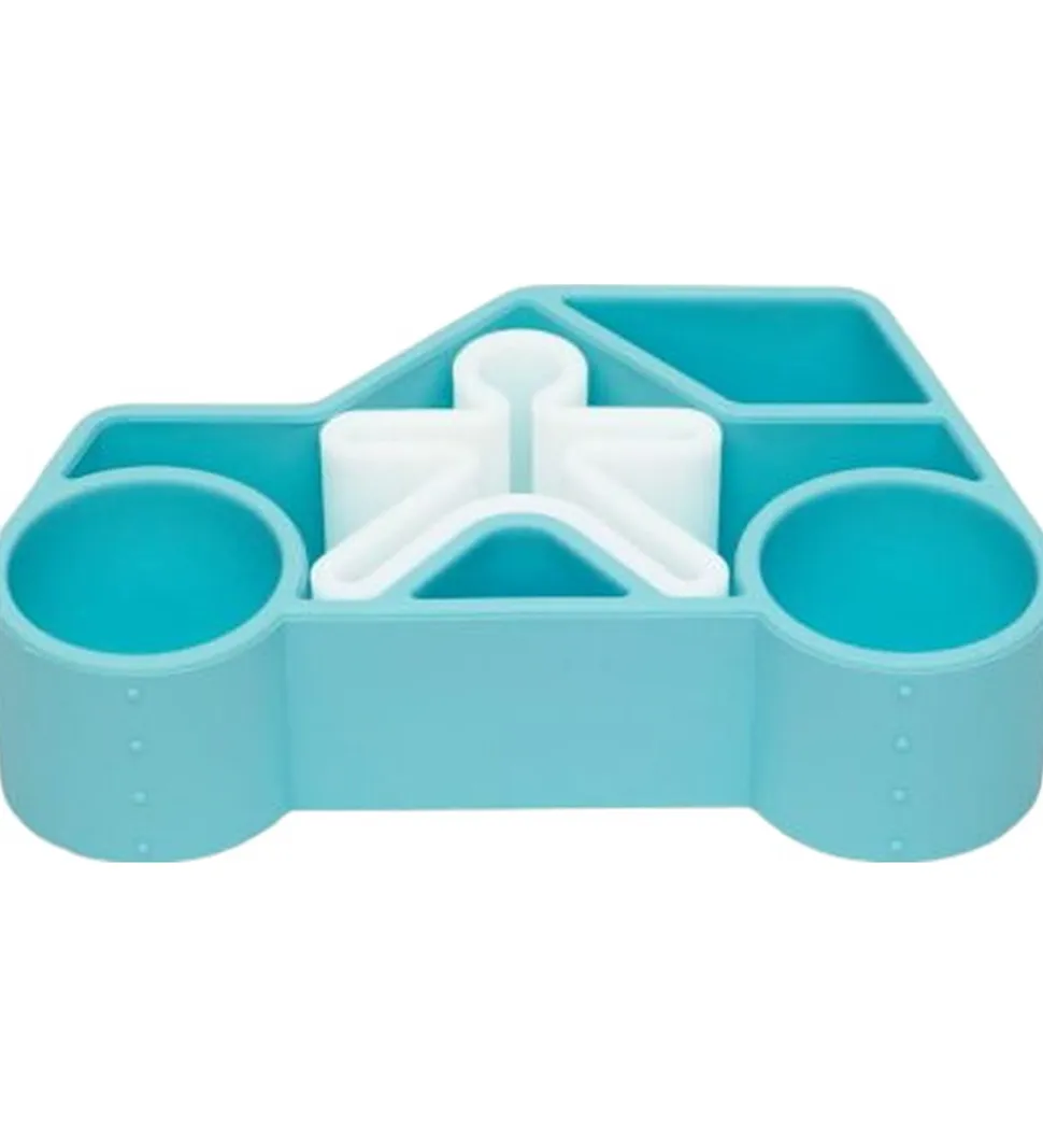 Smart Dëna bidelegetøj, som består af en lyseblå bil og en hvid figur, der passer ind i bilen.