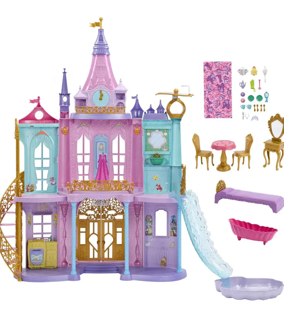 Disney Princess slottet har 3 etager og 10 legeområder, der hver er inspireret af forskellige Disney Princess karaktere. Slottet har en rutsjebane der går ned til en pool, samt et flyvende tæppe så børnene kan finde på historier der både foregår til lands, i vand og i luften. Når viserne på uret bliver drejet aktiveres magiske lyde og lys for endnu mere historiefortælling. Børnene kan lade deres fantasi løbe frit, og skabe uendelige eventyr med slottet, men samtidig kan de udleve deres yndlings øjeblikke fra filmene.