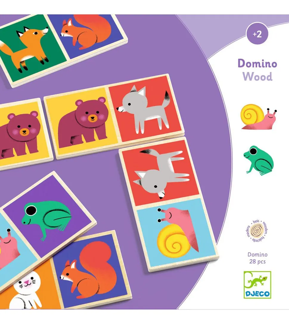 Flot Djeco domino med illustrationer af forskellige vilde dyr.