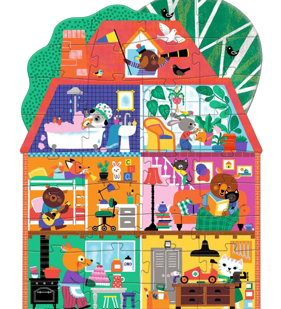 Sjovt Djeco puslespil med motiv af et spænende hus.