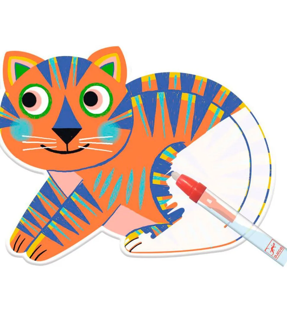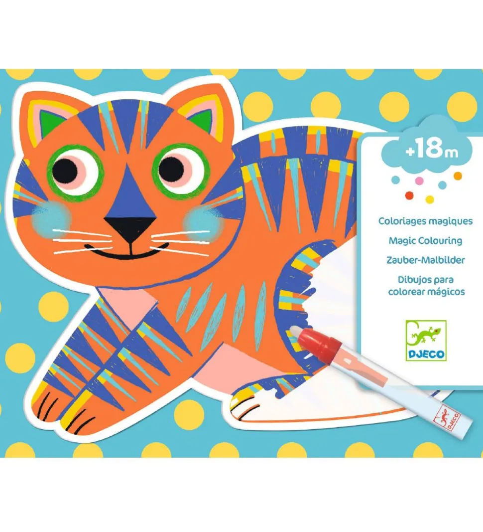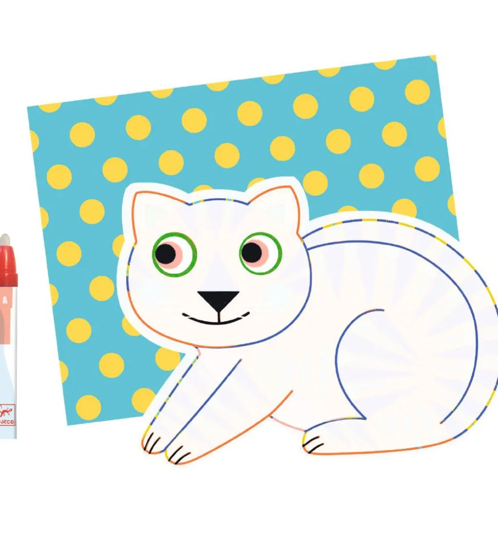 Fin Djeco magisk farvelægning bestående af en magisk pen og fire motiver af forskellige dyr.