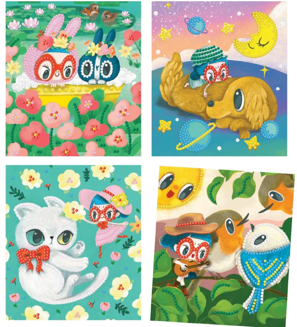Djeco mini diamanterne er perfekte til de kreative små, da de selv kan vælge hvilke farver af de små perler de sætter på de forskellige motiver. Sættet er med til at styrke barnets finmotorik.