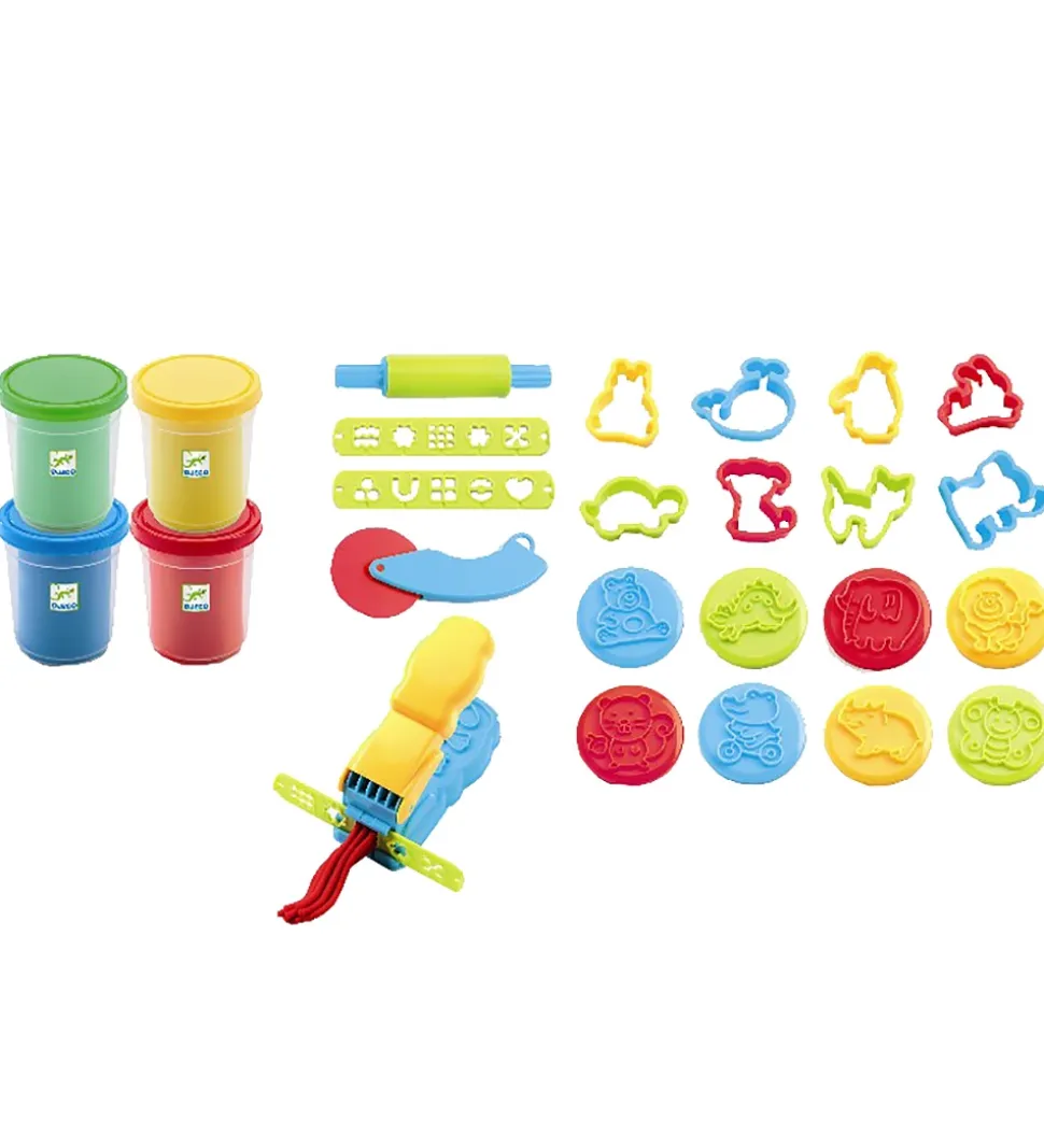 Djeco modellervoks-sættet har alt hvad der skal til at lege med modellervoks og skabe flotte og sjove figurer.