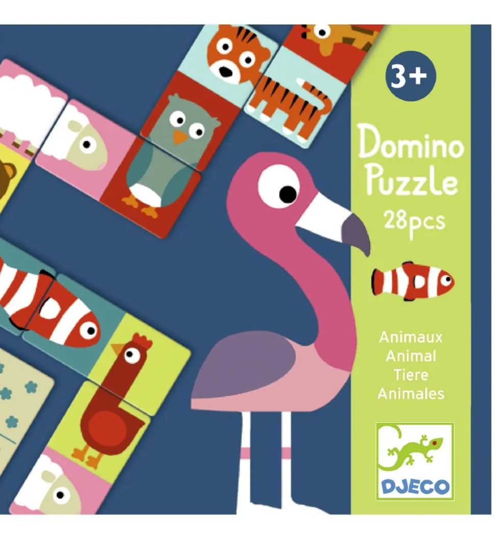 Finurligt Djeco puslespil med motiver af søde dyr.