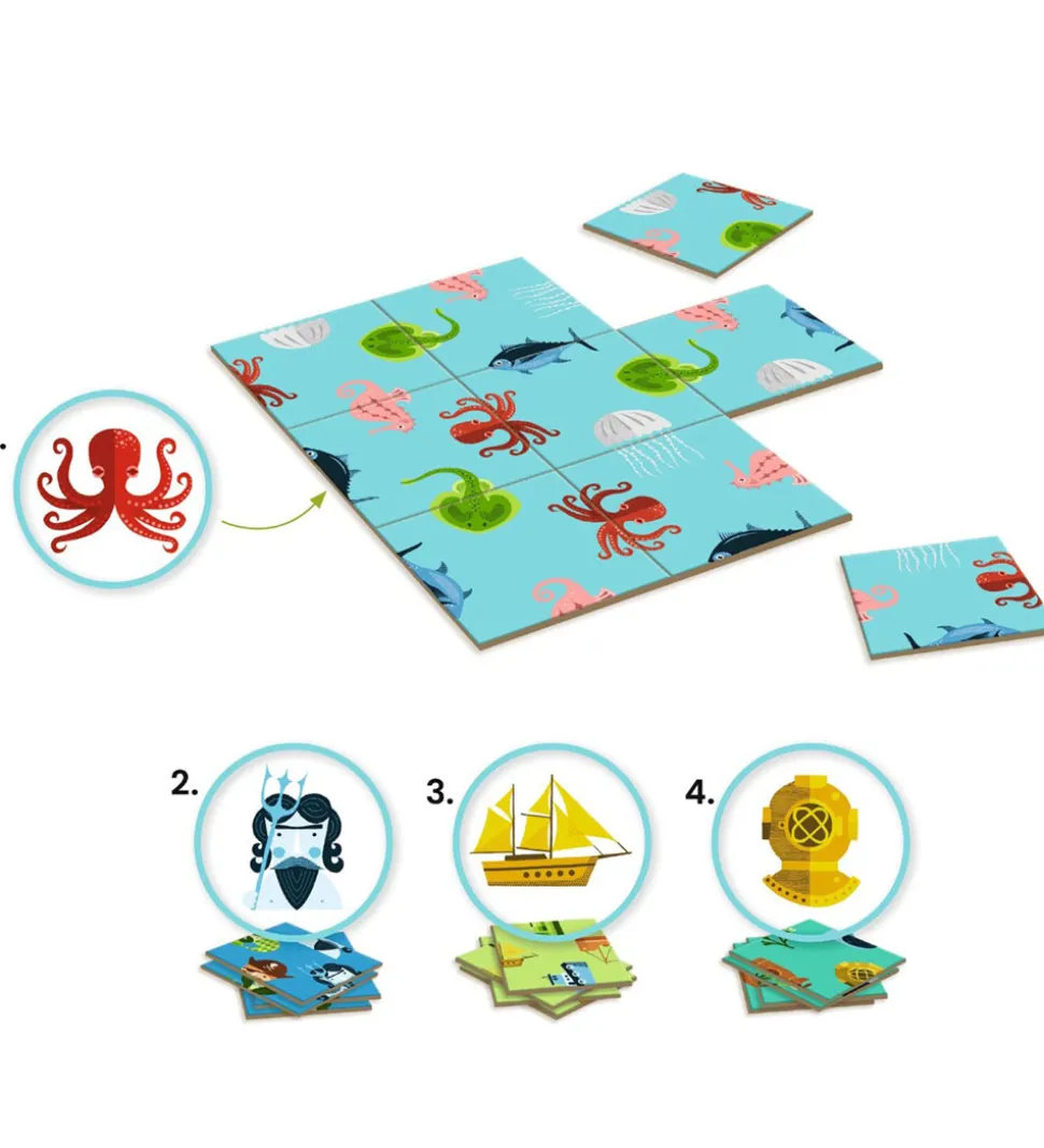 Sjovt Djeco spil med et hav tema og billeder af mange forskellige havdyr.