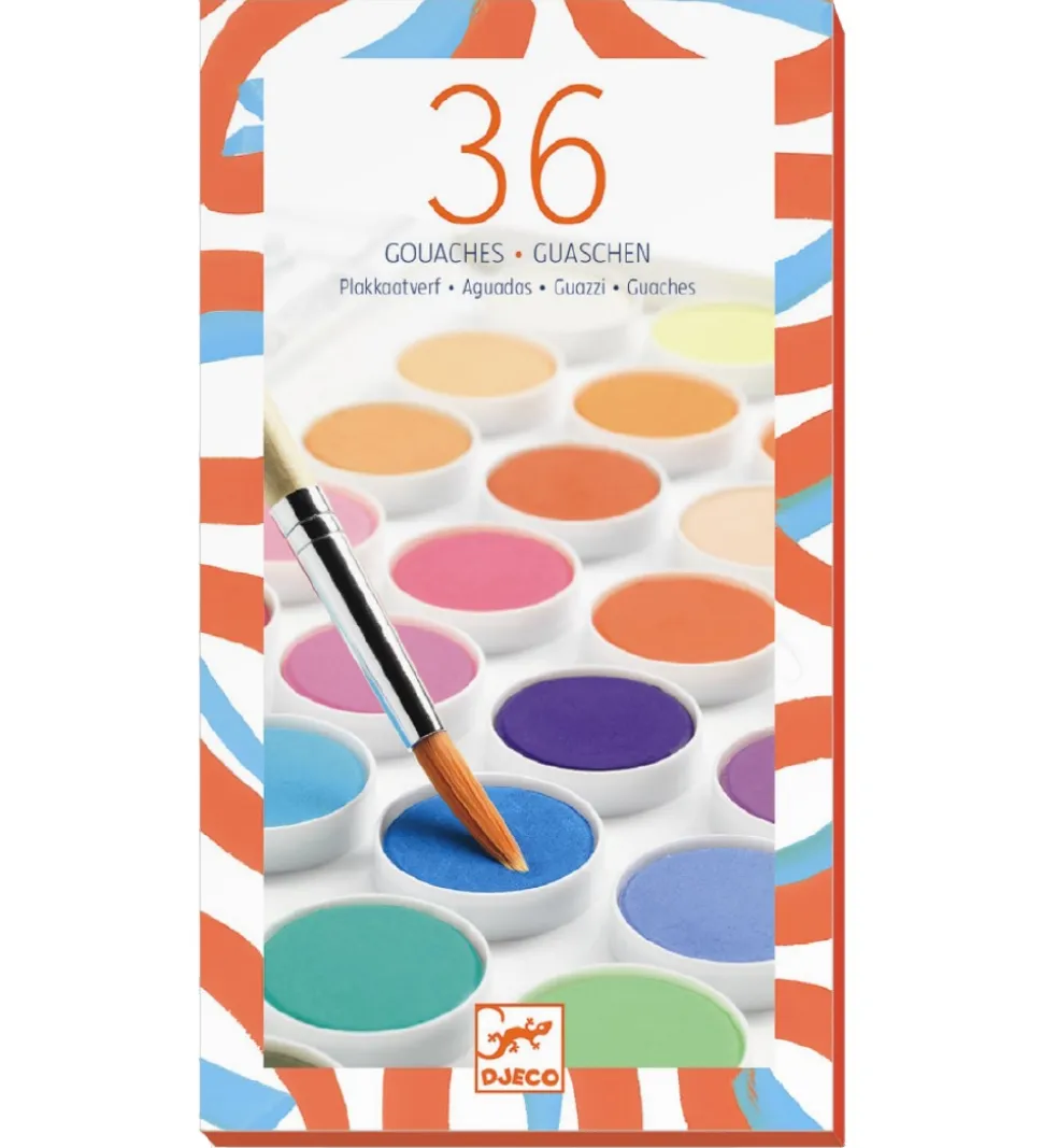 Flotte Djeco vandfarver med 36 forskellige farver.