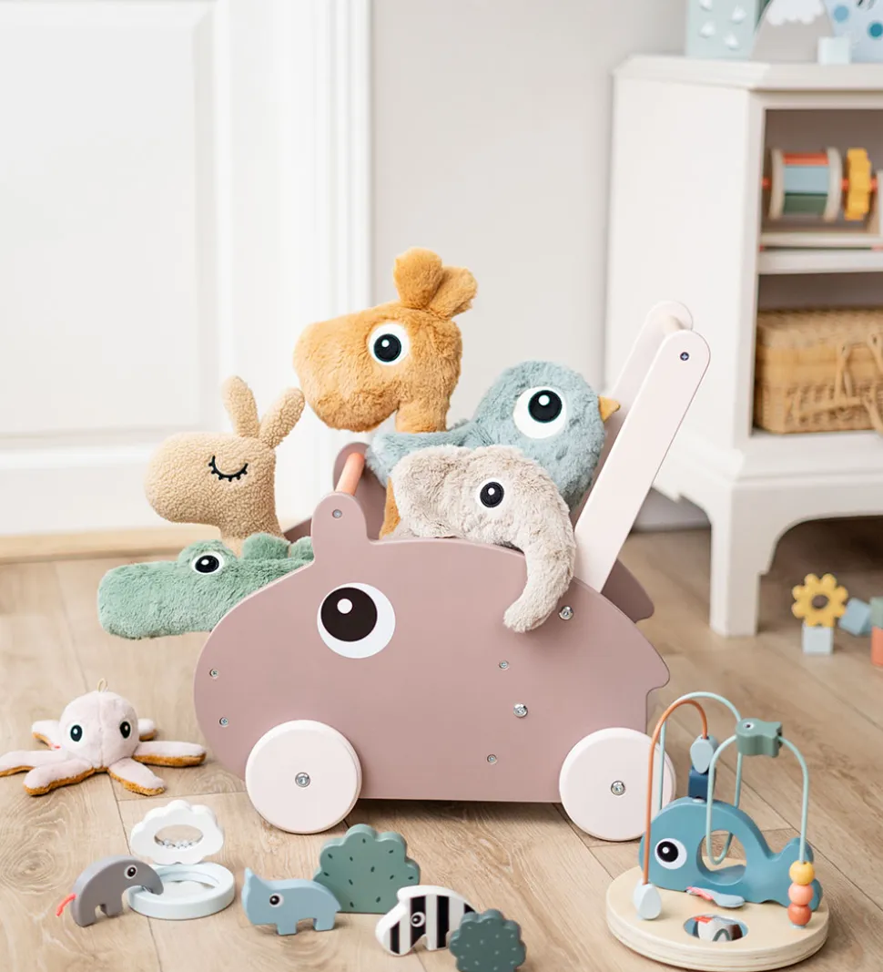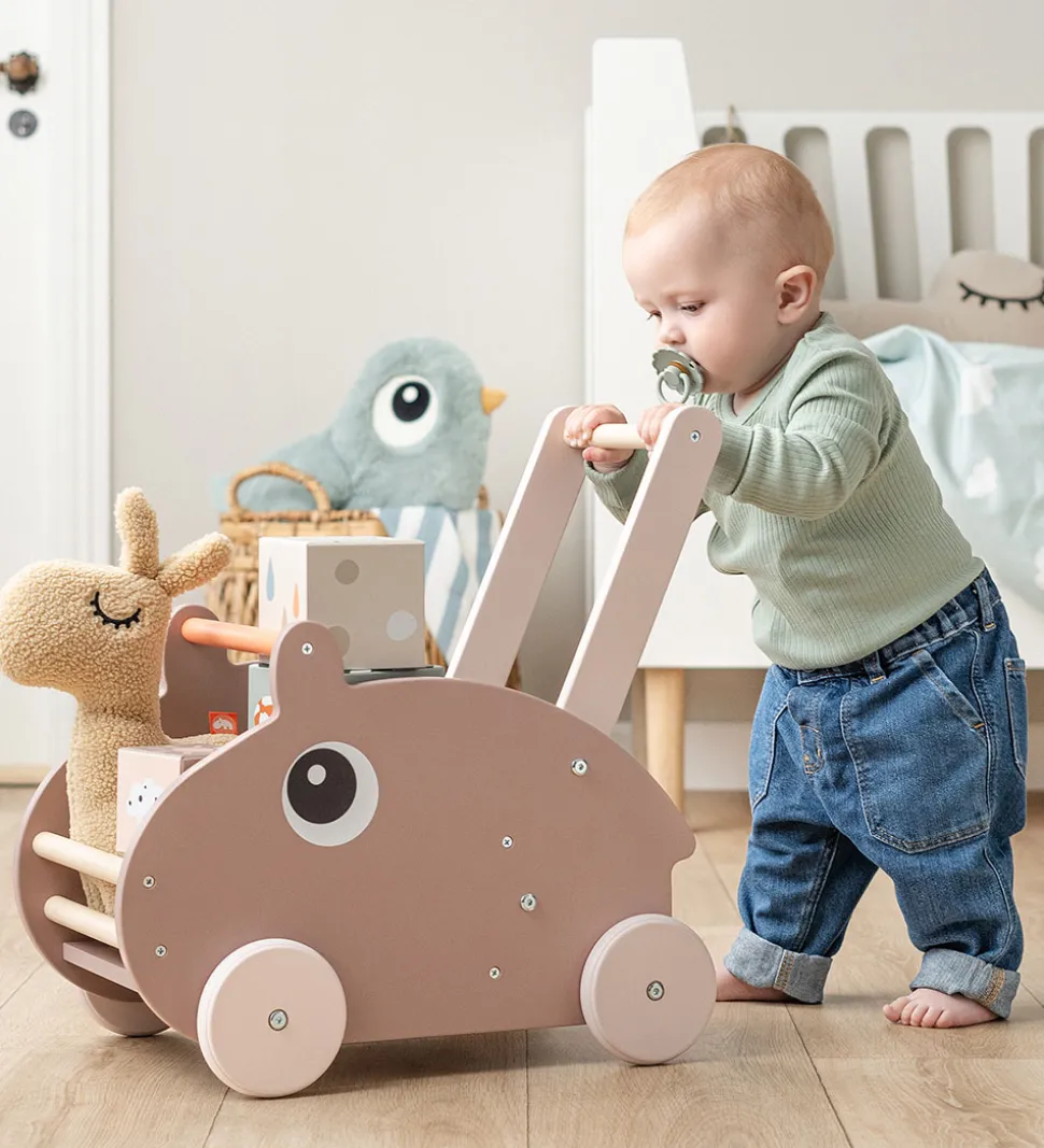 Done by Deer gåvognen er lavet af krydsfiner og har praktiske gummihjul. Vognen er god støtte til de små, når de skal lære at gå.