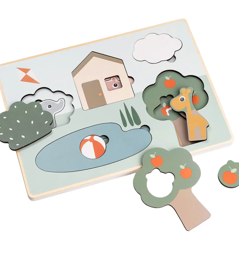 Done by Deer puslespillet er fremstillet i krydsfiner og er et lag på lag puslespil med mange fine motiver, og har et lille hul ved siden, som gør det nemt at få brikkerne op.