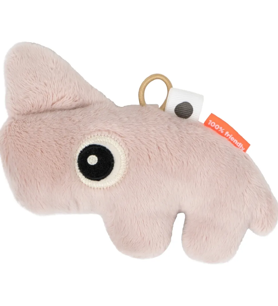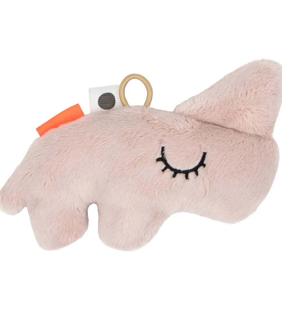 Sød Done By Deer rangle i pudder med form som næsehornet Nozo. Næsehornet har broderede øjne, hvor det ene er lukket, og det andet er åbent.