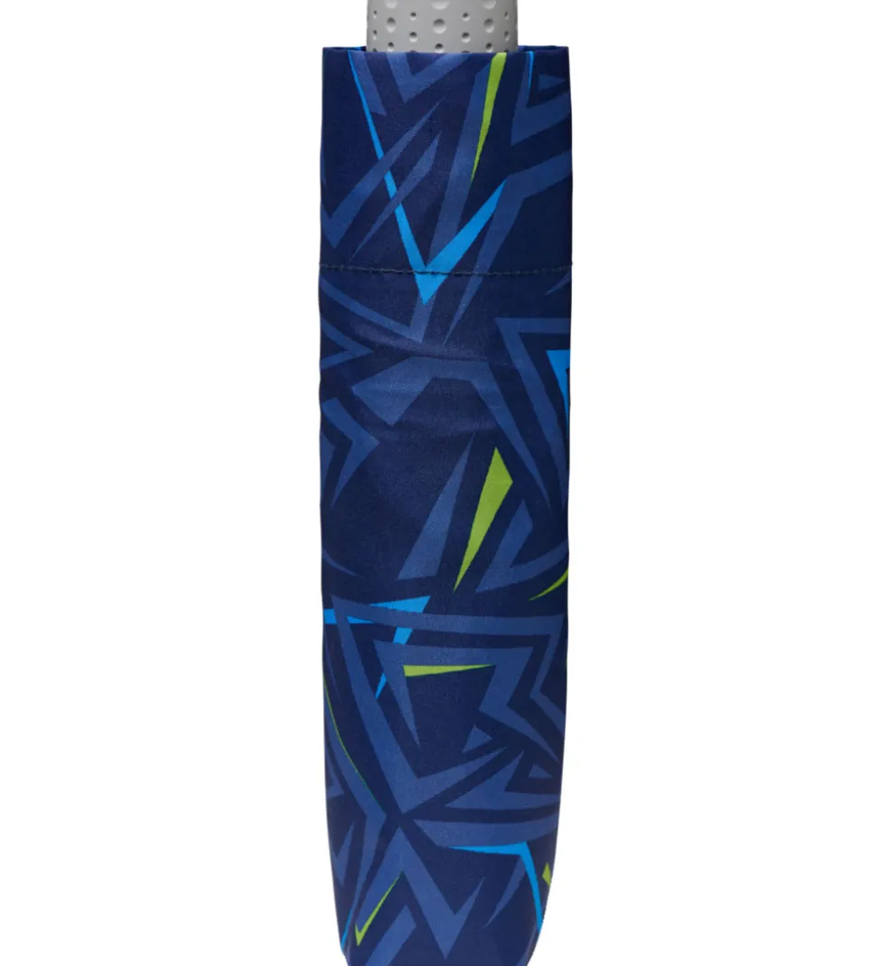 Smart Ergobag paraply i blå med et flot mønster med detaljer i gul og blå nuancer.