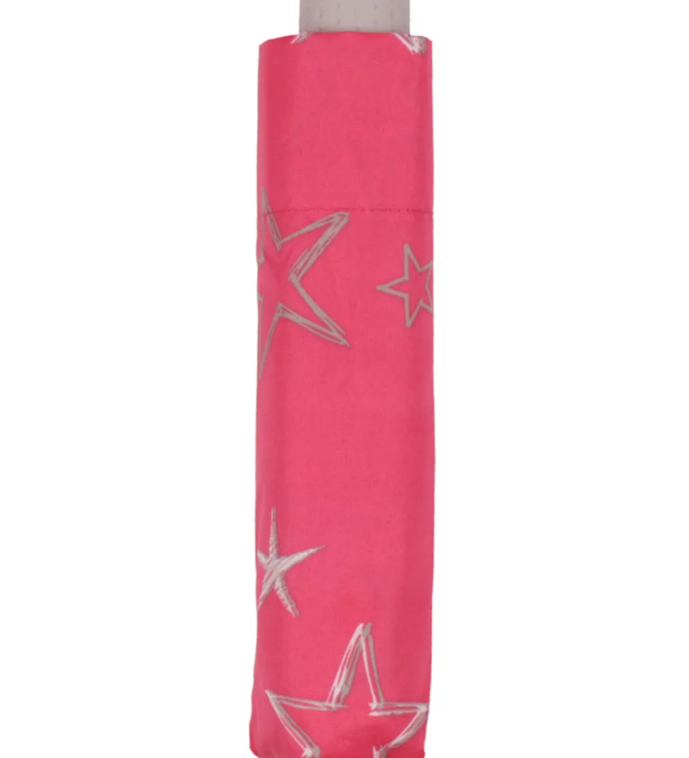 Fin Ergobag paraply i lyserød med stjerner.