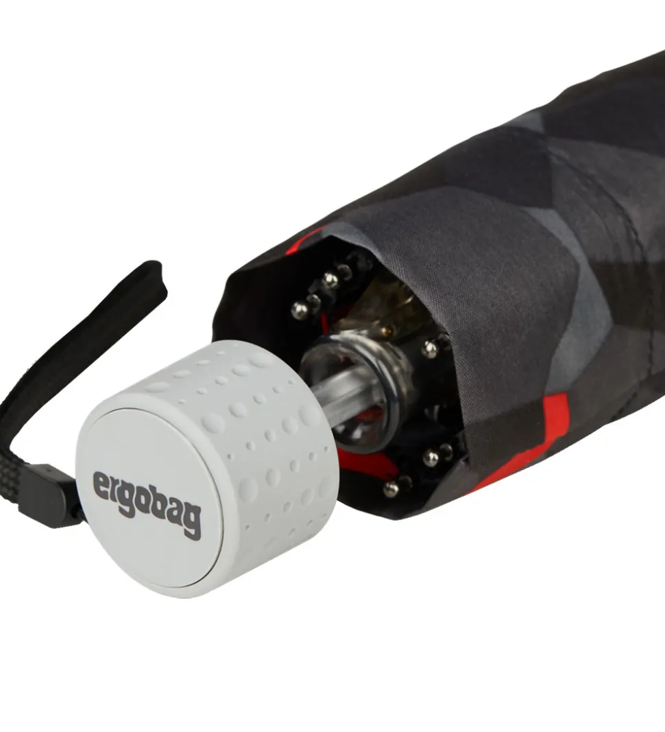 Smart Ergobag paraply med et flot design i sort, rød og grå.